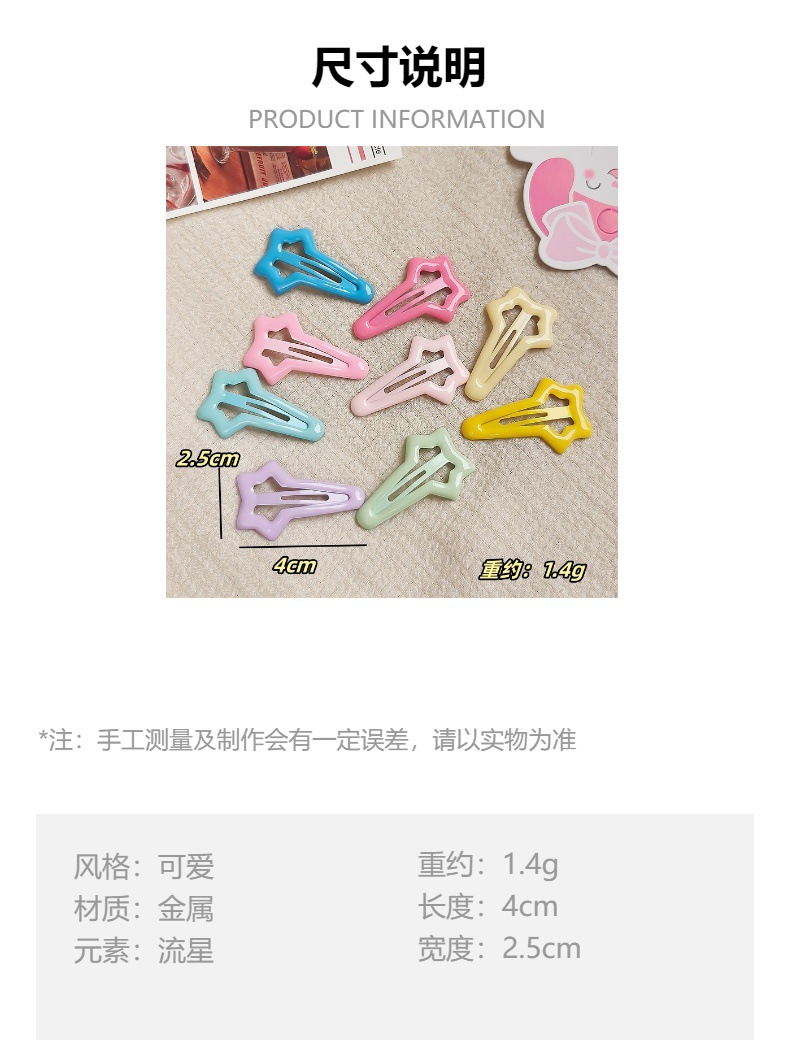 캔디 컬러 드롭 유성 헤어핀 여름 도파민 펜타그램 BB 클립 할로우 사이드 뱅 브로큰 헤어핀 헤어 액세서리