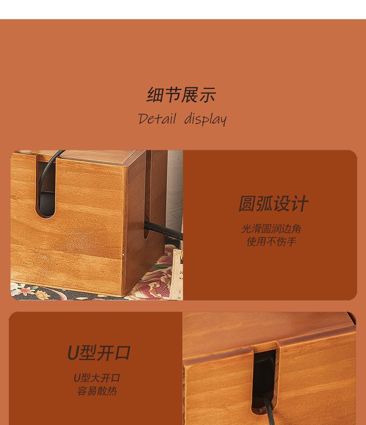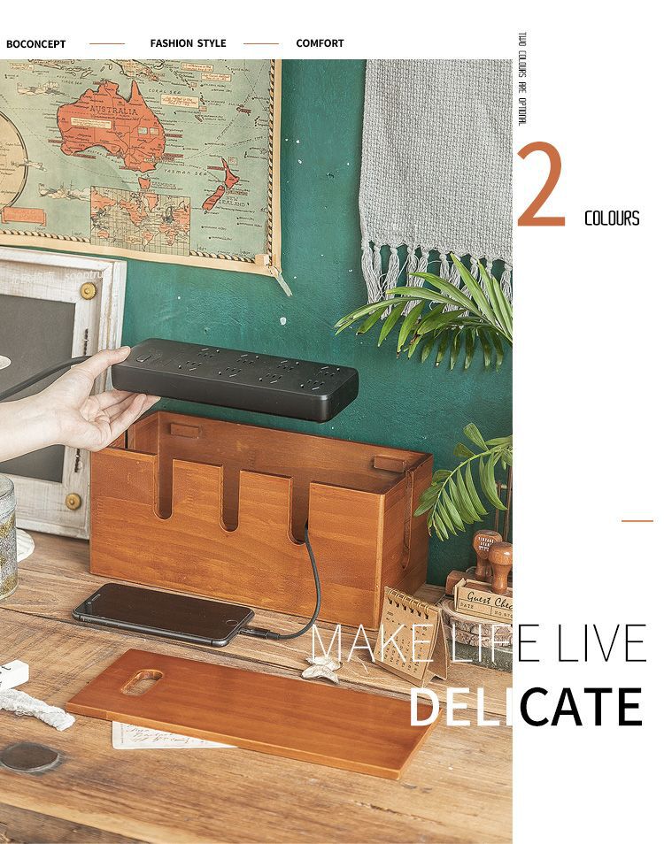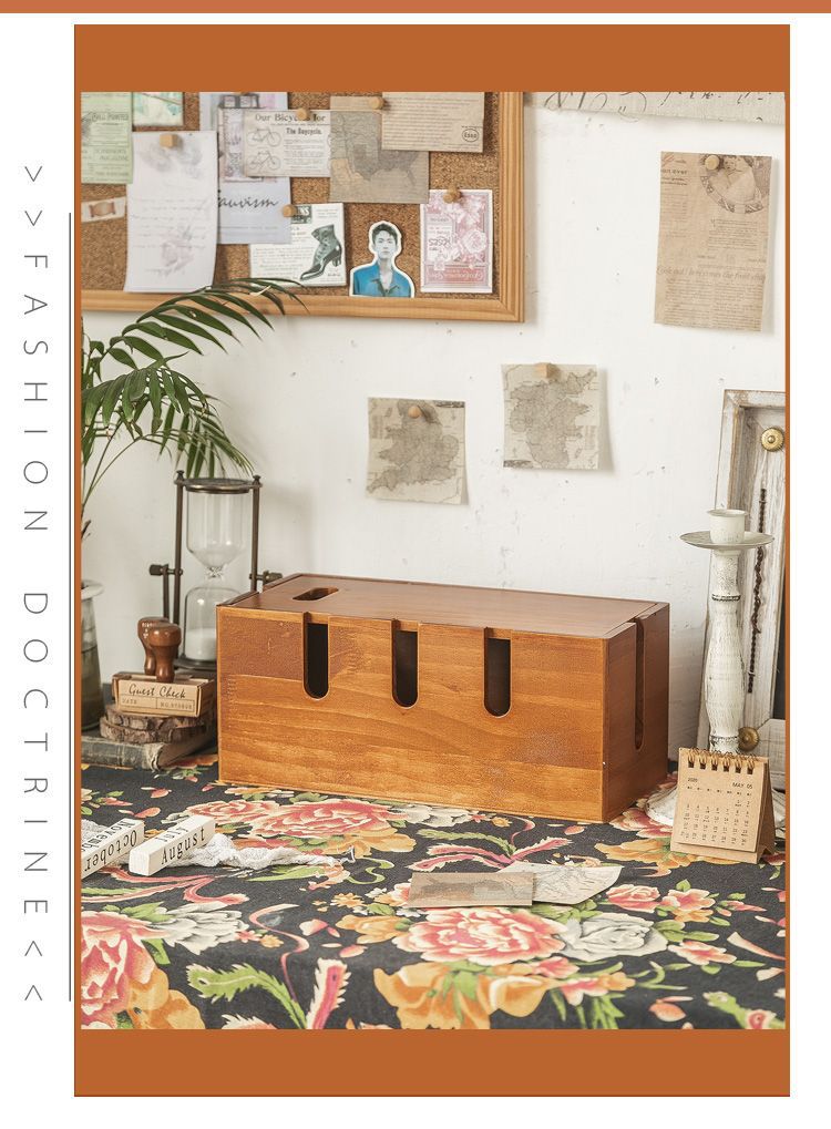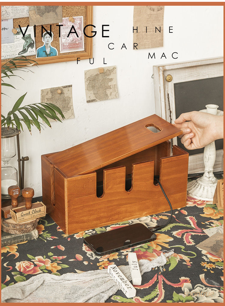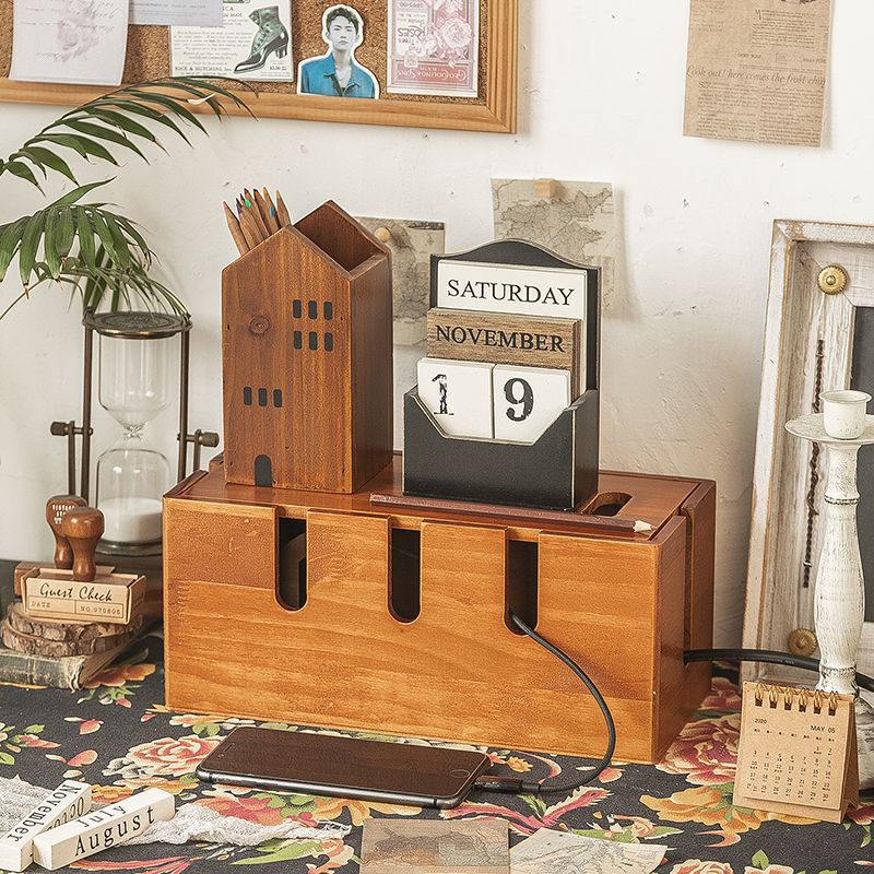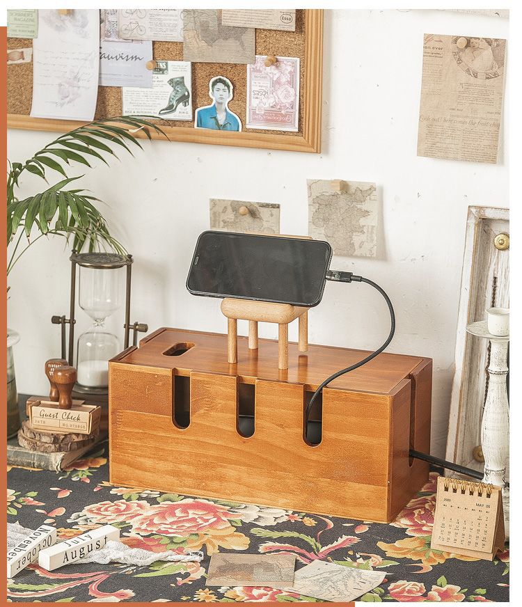 • 다기능 원목 케이블 관리 상자 - 레트로 컬러