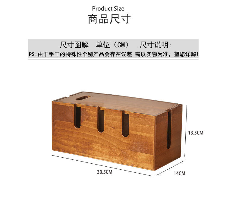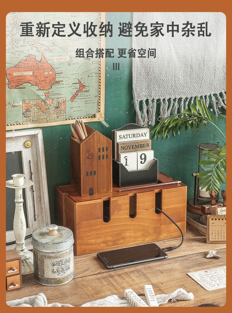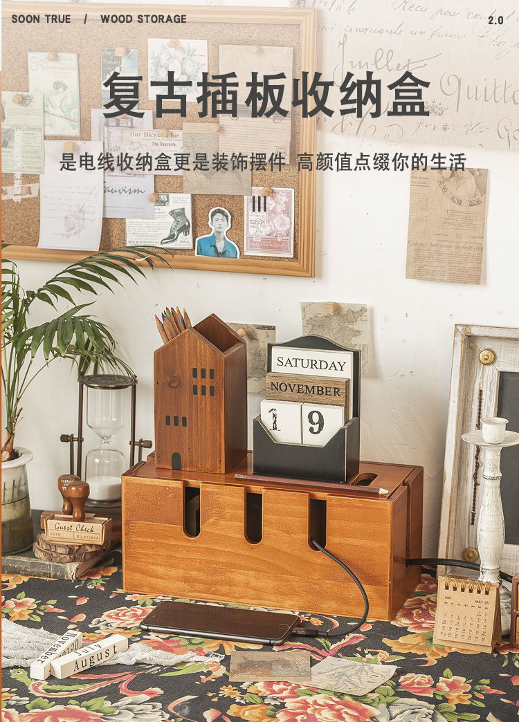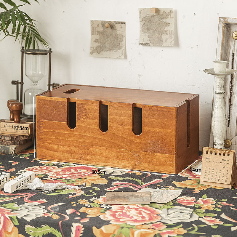 단단한 나무 복고풍 컬러 데이터 케이블 보관 상자 거실 데스크탑 플러그 정리 상자 다기능 와이어 충전 케이블 상자스토어 가기
