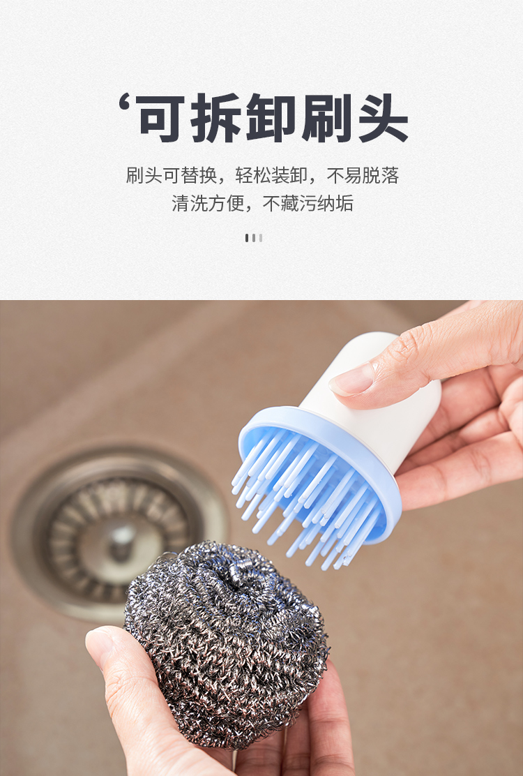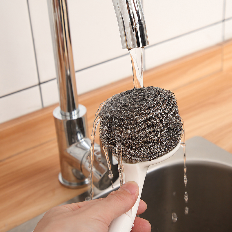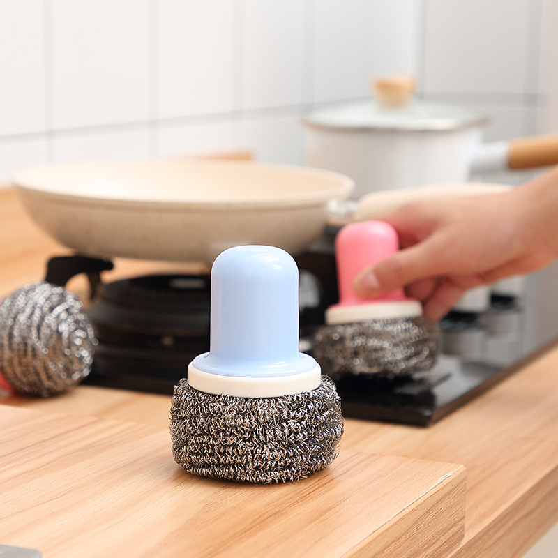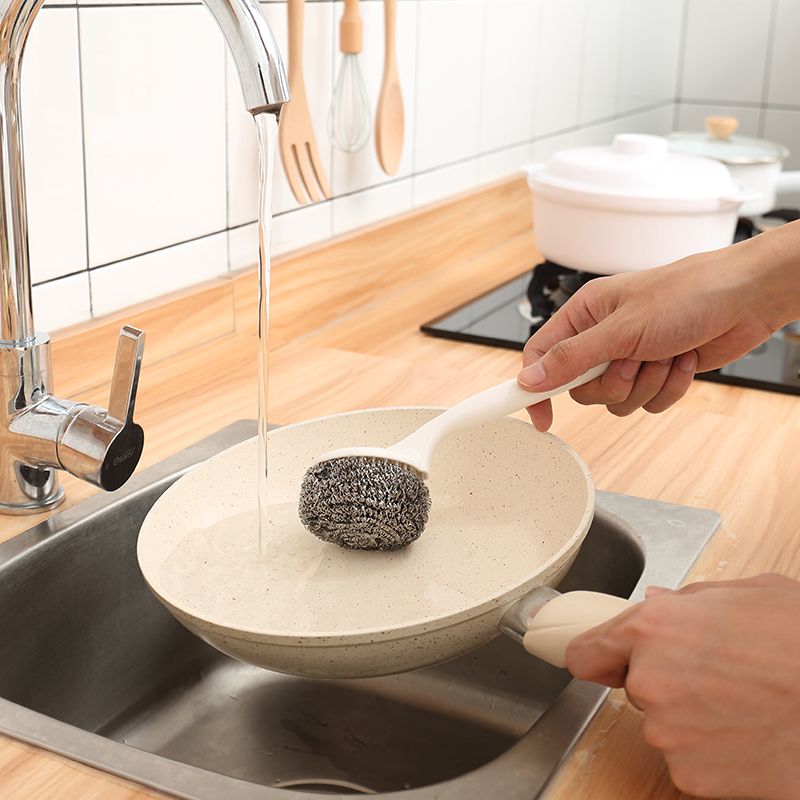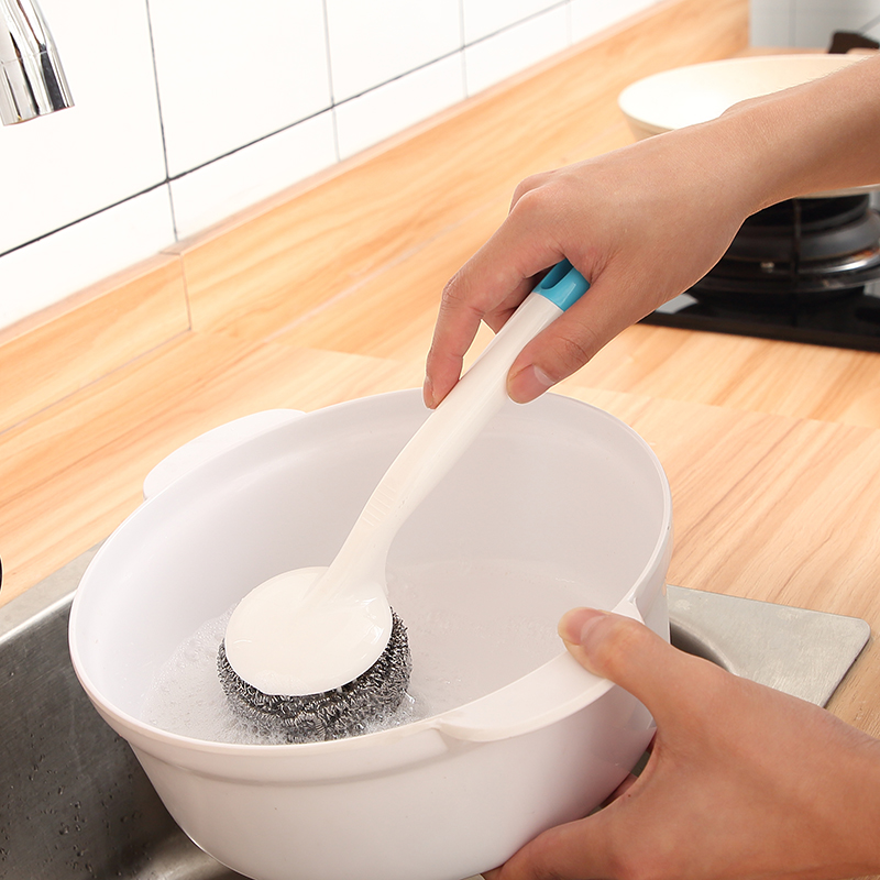 손잡이가 달린 일본식 와이어 볼 브러시, 물이 젖지 않는 창의적인 게으른 손, 냄비 청소 브러시, 청소 볼 교체 가능.1285스토어 가기