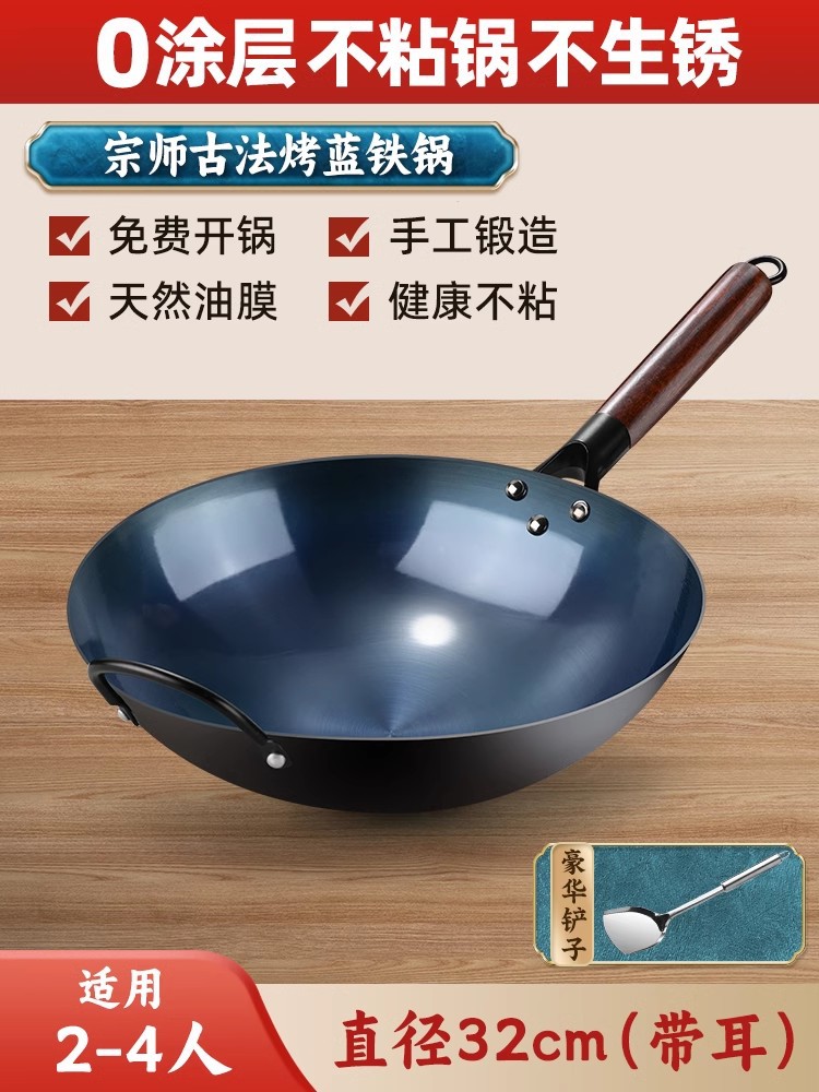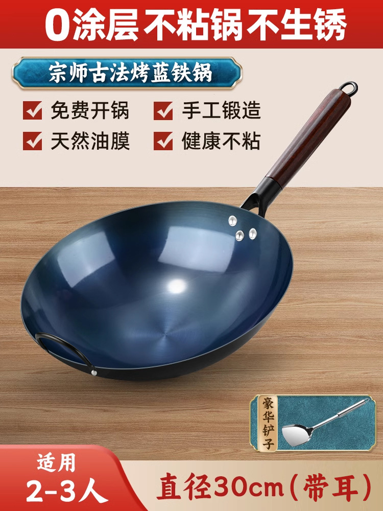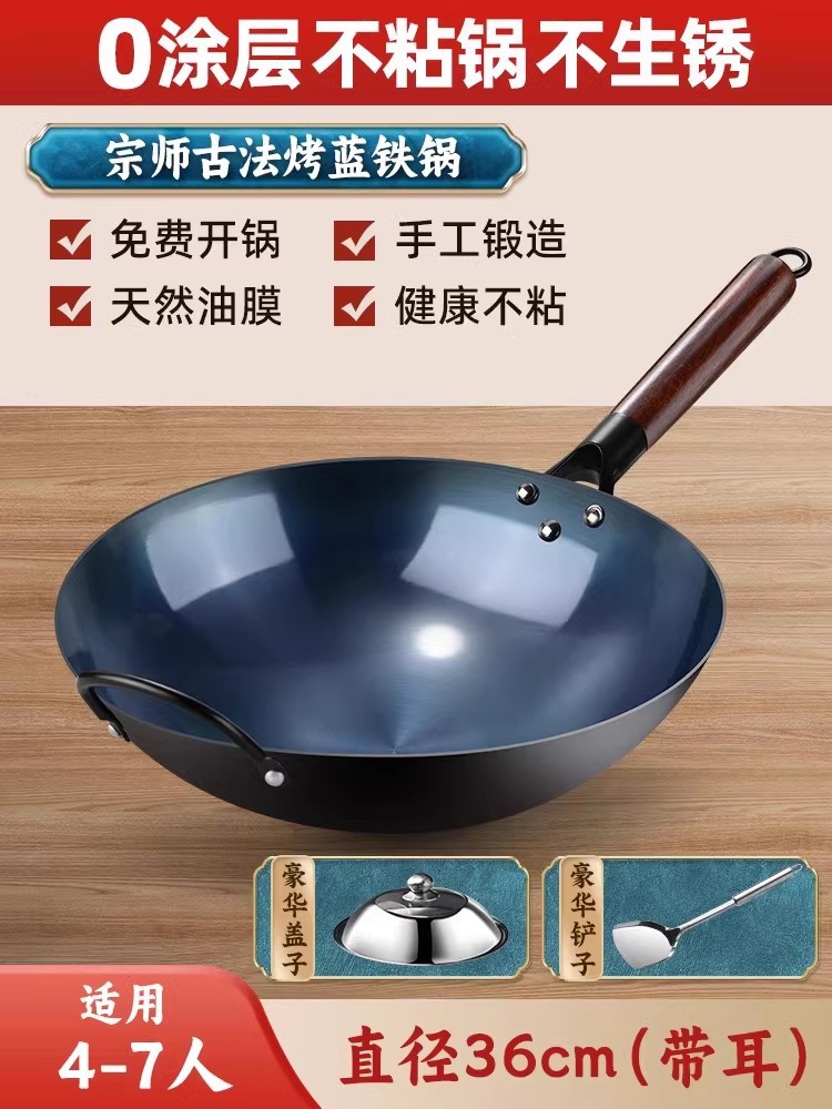 • 36CM + 귀 + 고급 커버 + 고급 삽 + 고대 구운 파란색 [끈적 냄비에 작별 인사 / 냄비가 두꺼워지고 깊어짐].