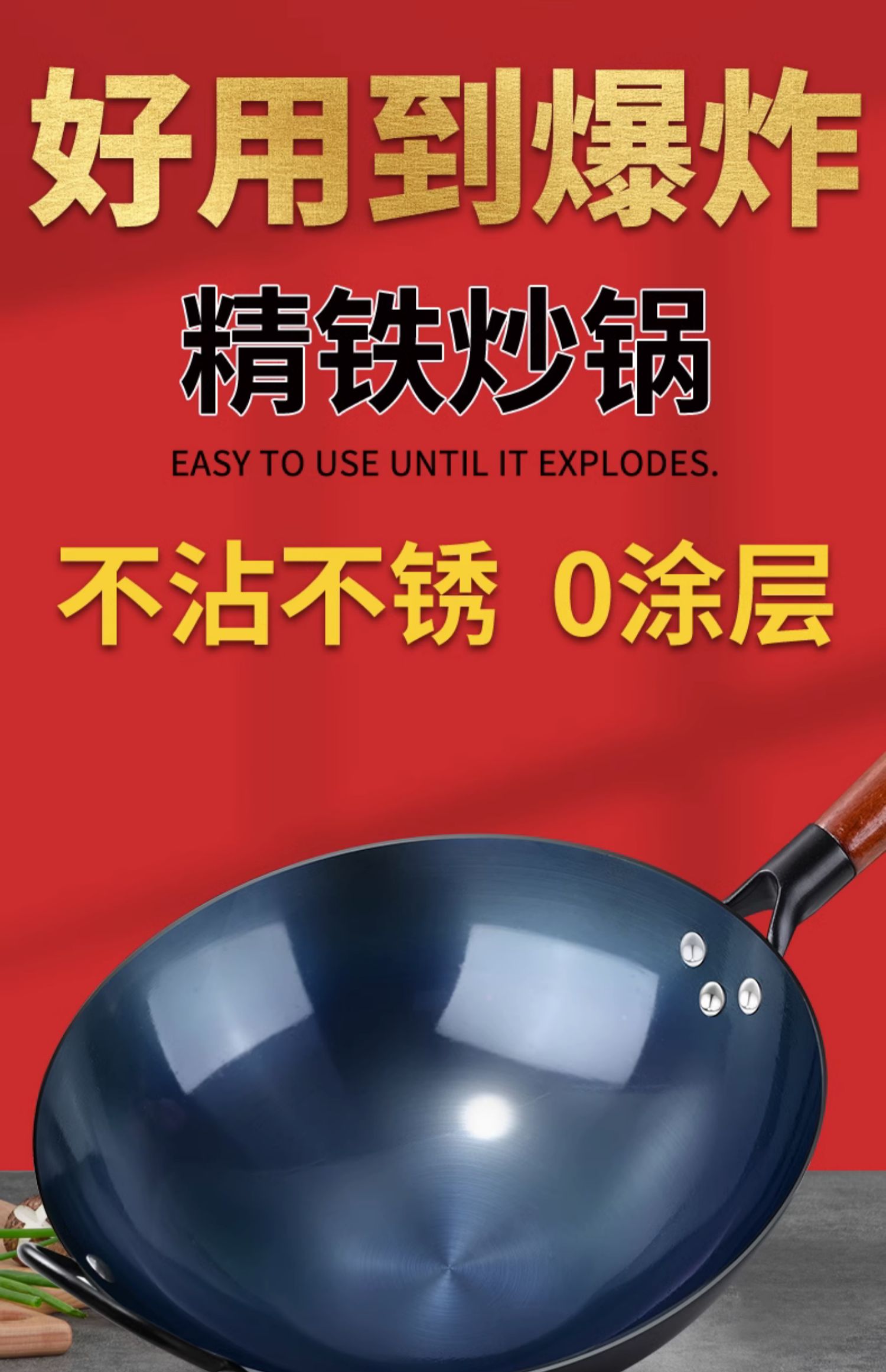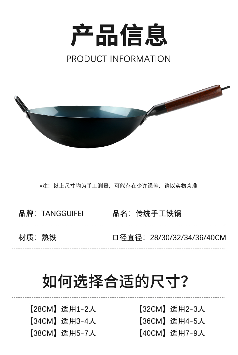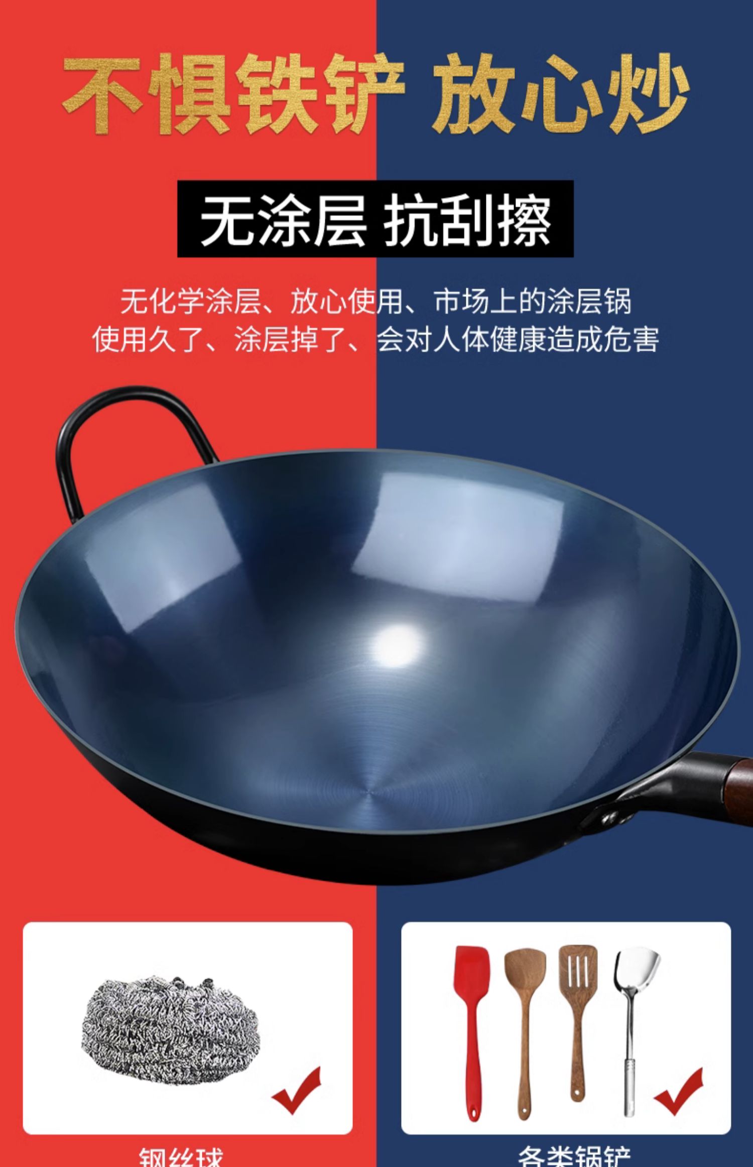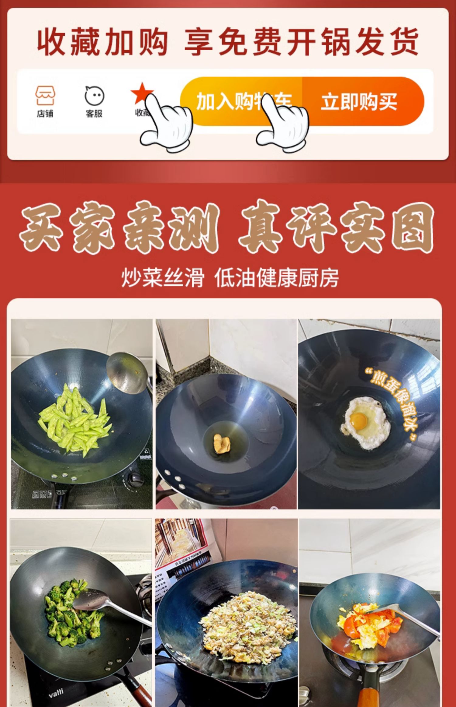 Iron Wok Zhangqiu Flagship 수제 Wok 가정용 공식 비 스틱 팬 코팅되지 않은 가스 스토브스토어 가기