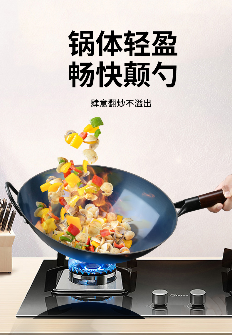 Iron Wok Zhangqiu Flagship 수제 Wok 가정용 공식 비 스틱 팬 코팅되지 않은 가스 스토브