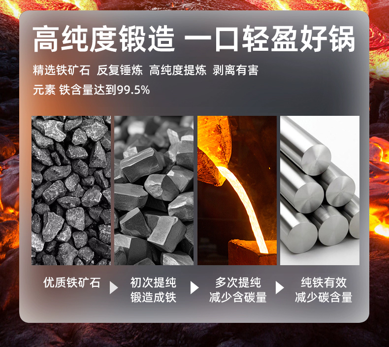 • "고순도 정제철 방청 ""0코팅"" 물리적 유막은 영양을 공급할수록 달라붙지 않아 끈적이는 팬과 작별하세요"
