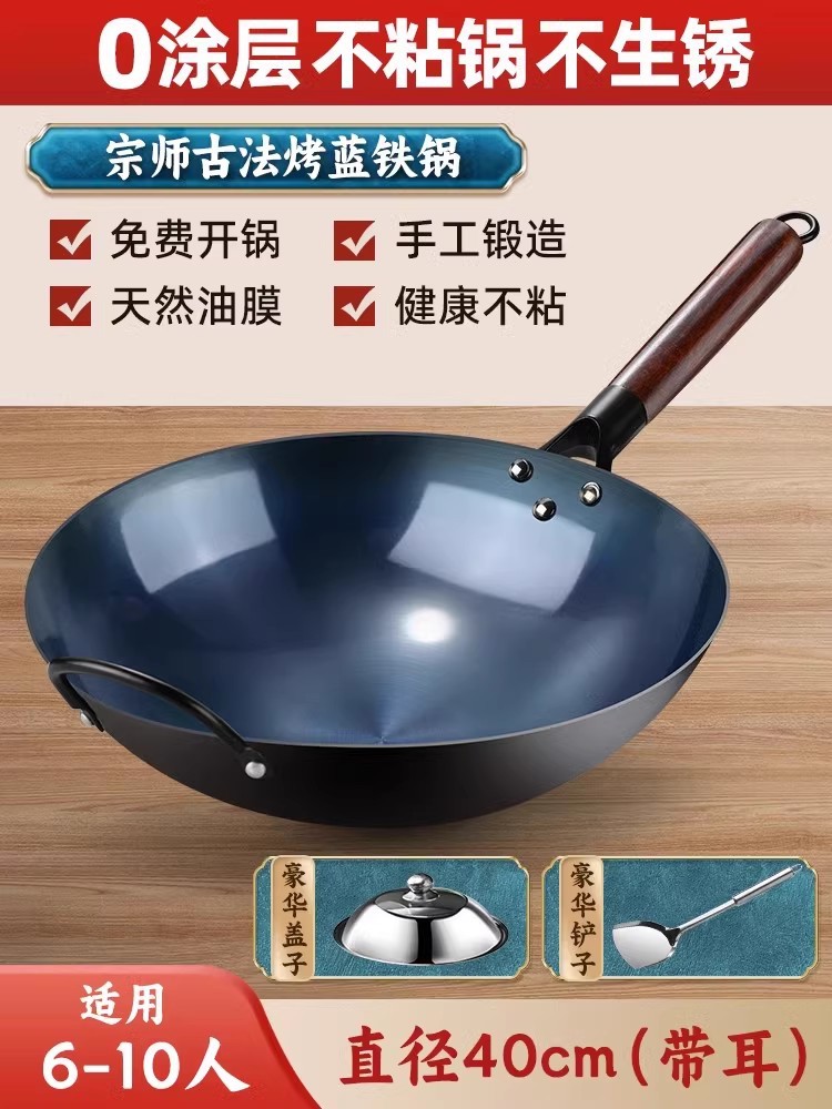 • 40CM + 귀 + 고급 커버 + 고급 삽 + 고대 구운 파란색 [끈적 냄비에 작별 인사 / 두꺼워지고 깊어짐 - 냄비가 열렸습니다]
