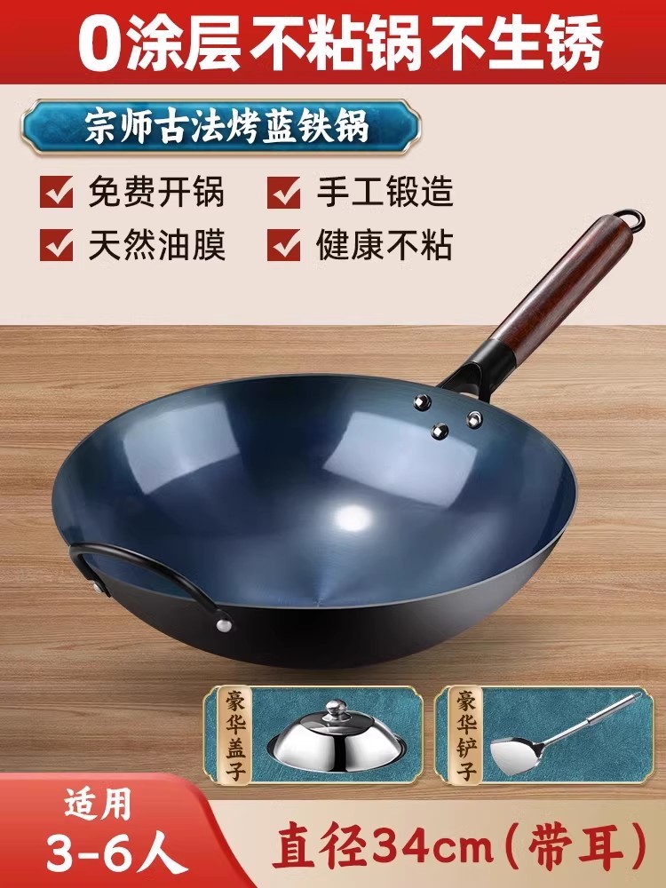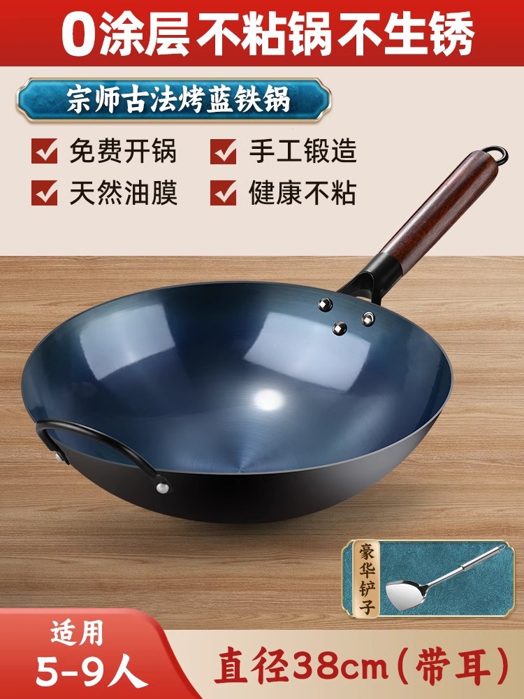 • 38CM + 귀 + 고급 커버 + 고급 삽 + 고대 구운 파란색 [끈적 냄비에 작별 인사 / 두꺼워지고 깊어짐 - 냄비가 열렸습니다].