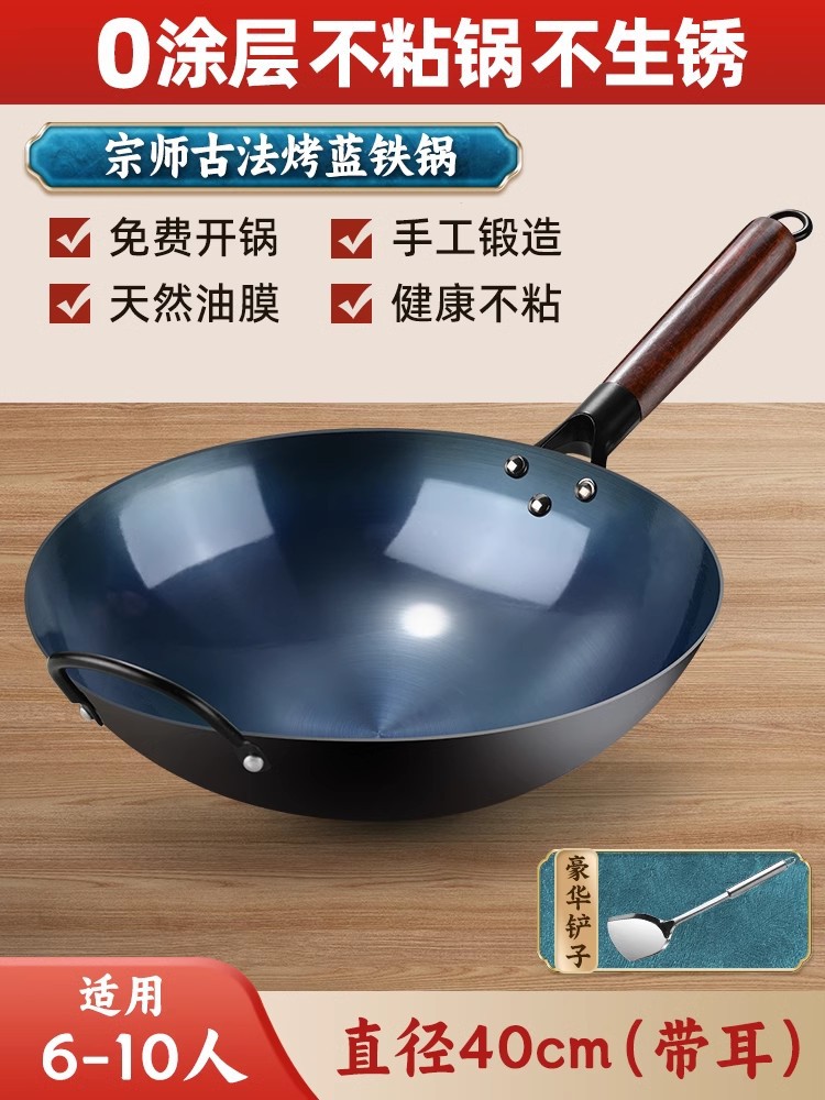 • 40CM + 귀 + 고급 삽 + 고대 구운 파란색 [끈적 냄비에 작별 인사 / 두꺼워지고 깊어짐 - 냄비가 열렸습니다].