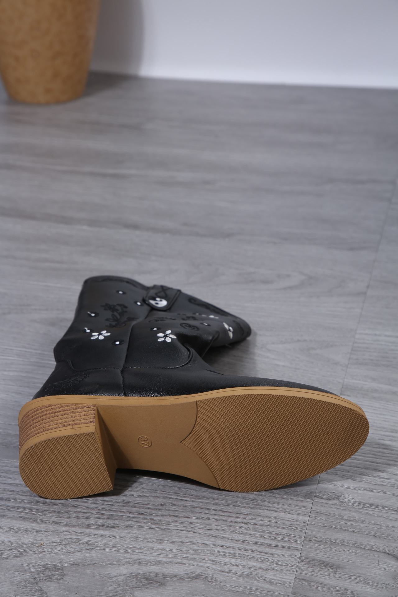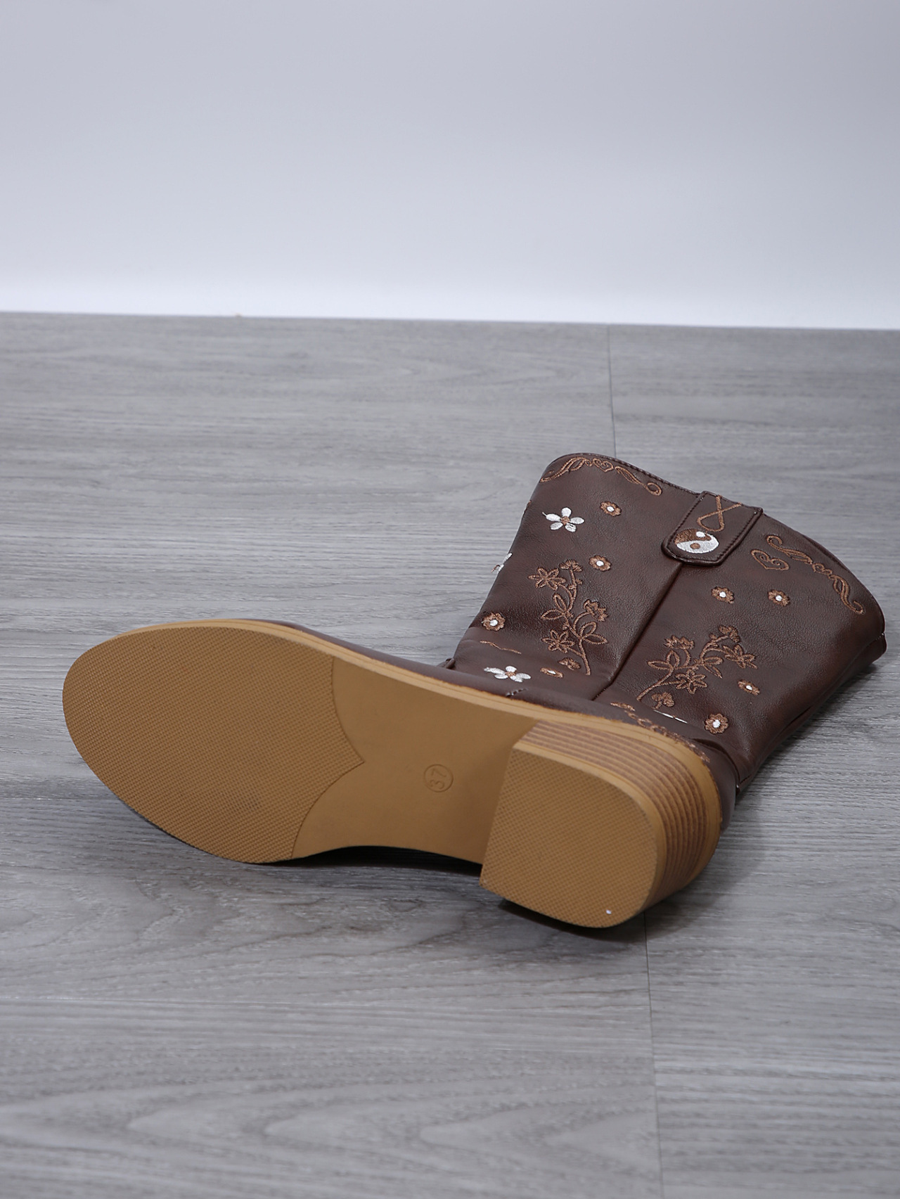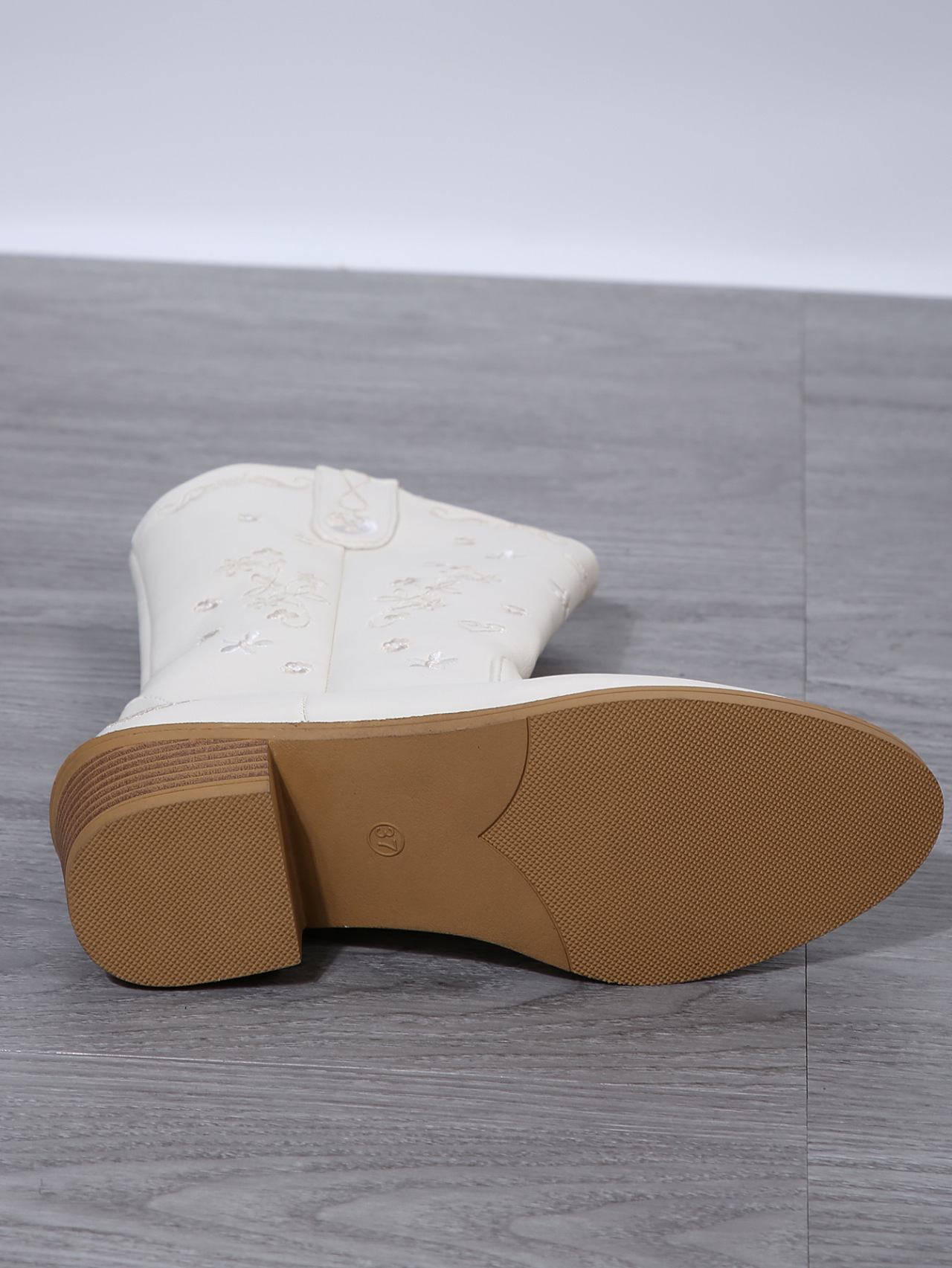 국경 간 2024 가을 새로운 스타일 35 ~ 43 사이즈 패션 부츠 뾰족한 두꺼운 굽 유럽과 미국 여성의 중간 튜브 부츠 도매스토어 가기