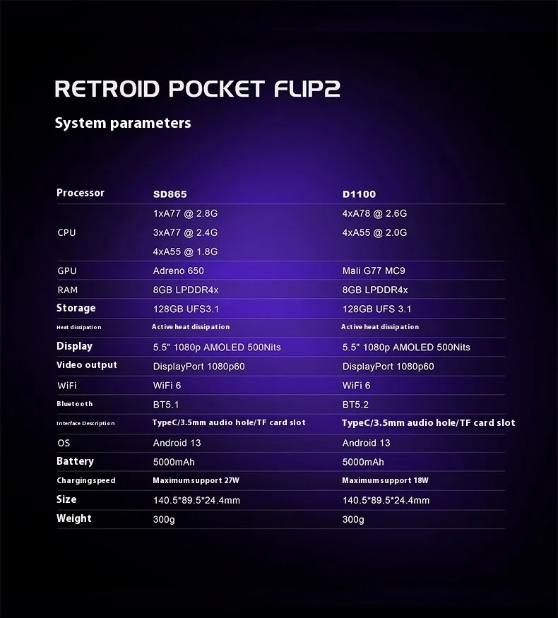새로운 Retroid Pocket Flip2 SD865 버전 5.5inch OLED 플립 안드로이드 휴대용 게임