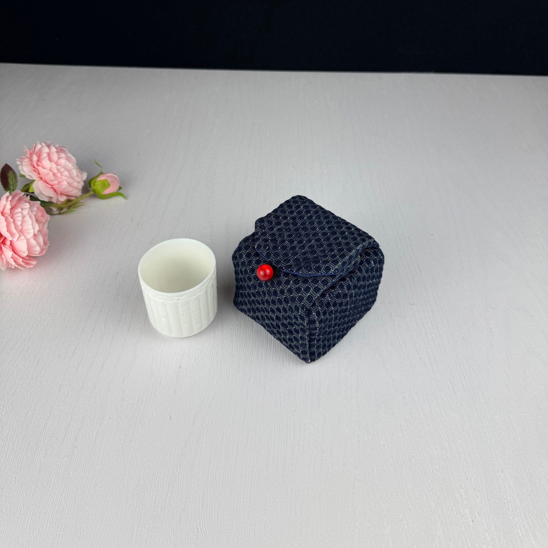 • 작은 단일 컵 사각형 진한 파란색 원형 패턴
