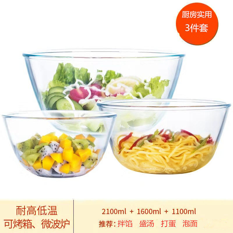 유리그릇, 투명 대형 전자레인지 전용 내열 고온 가정용 반죽 샐러드 그릇, 계란 및 반죽 그릇