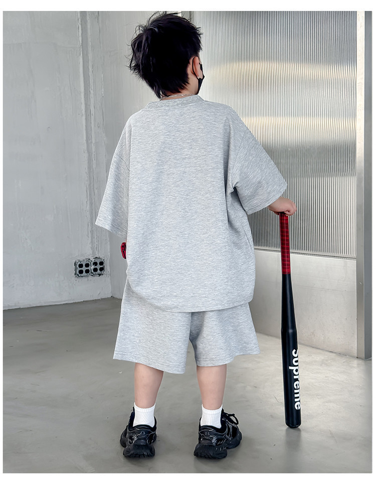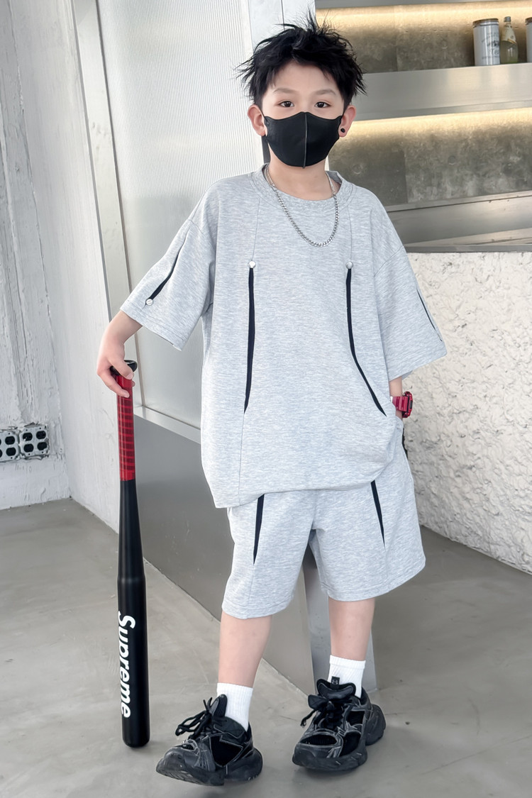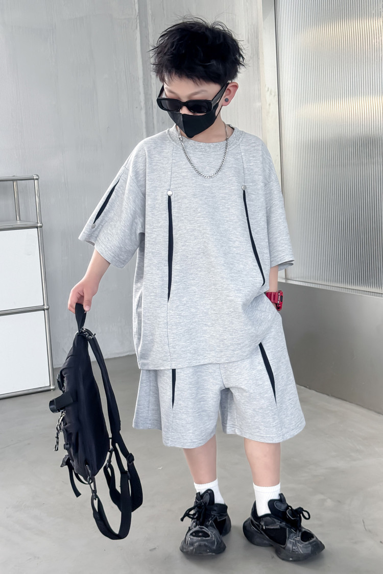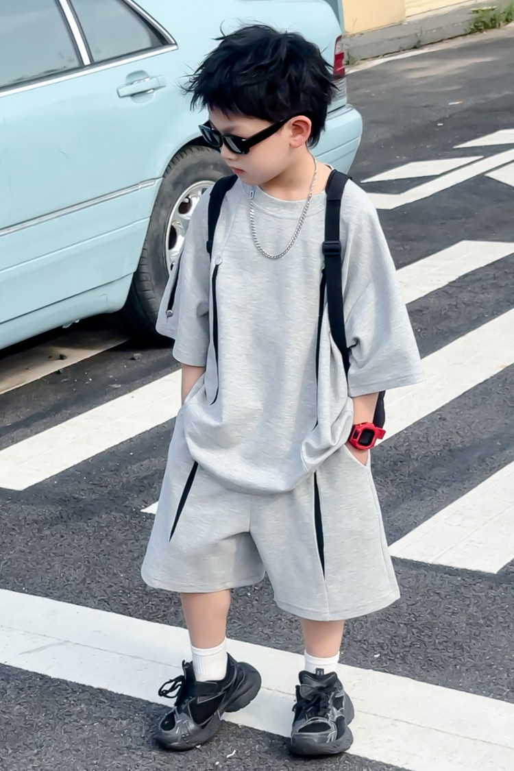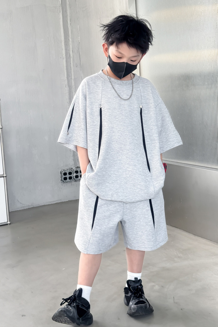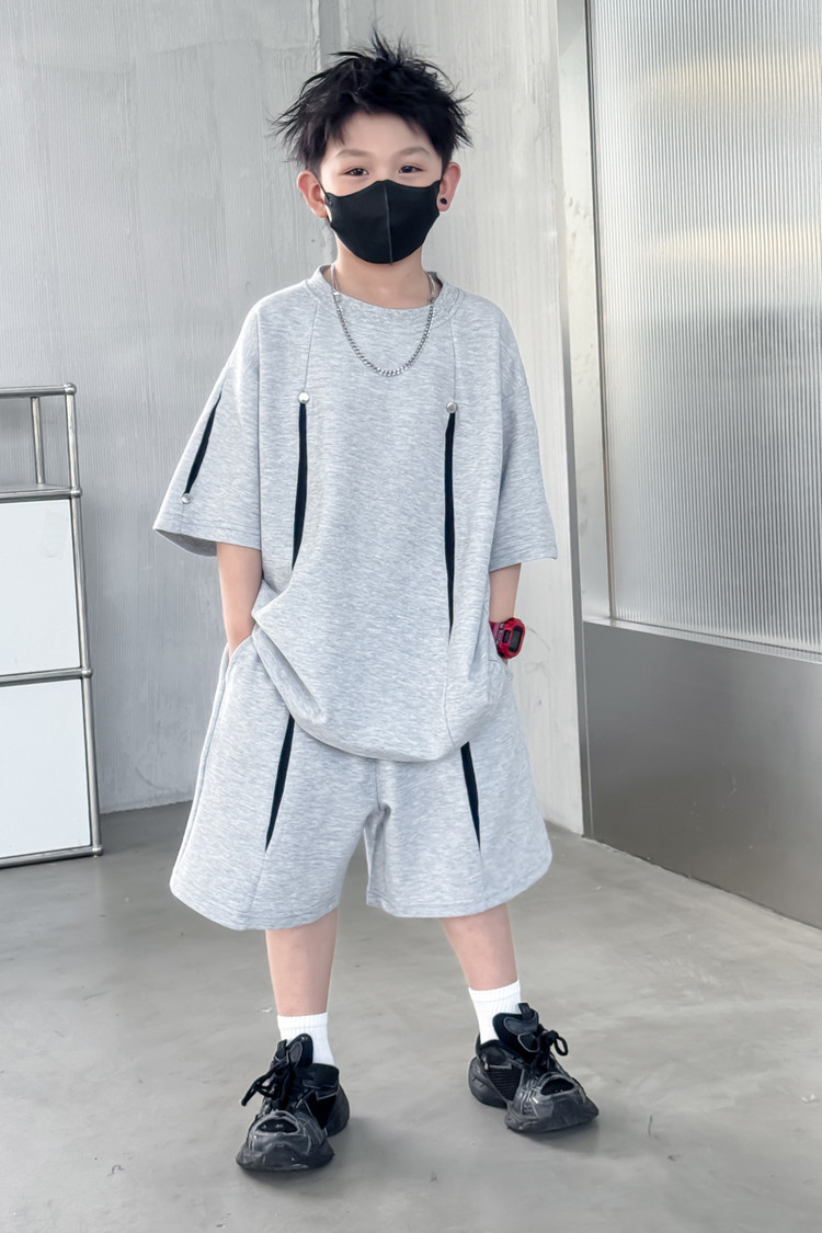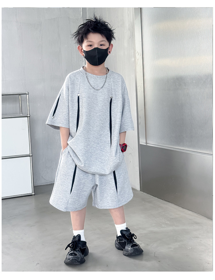소년 한국어 버전 대비 색상 정장 여름 어린이 느슨한 운동복 반팔 반바지 소년 잘 생긴 투피스 세트 크로스보더스토어 가기