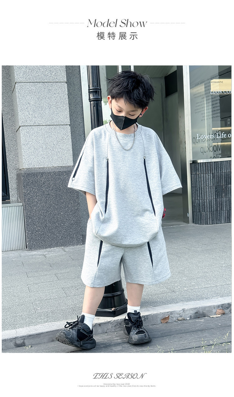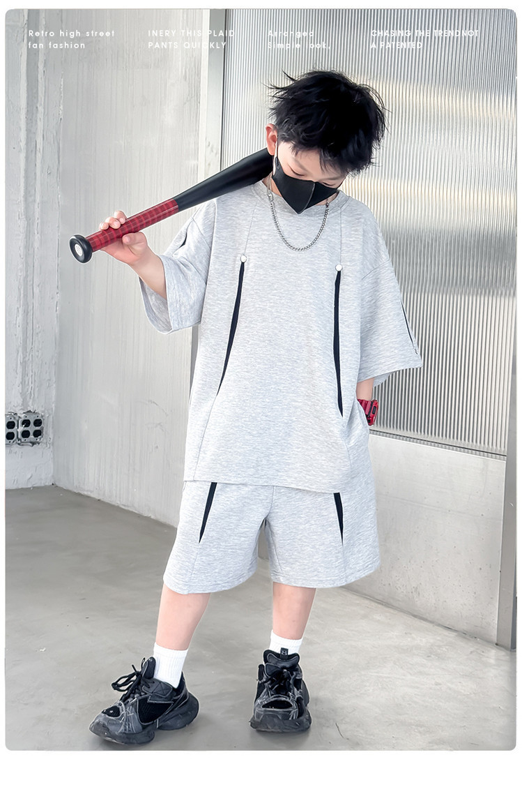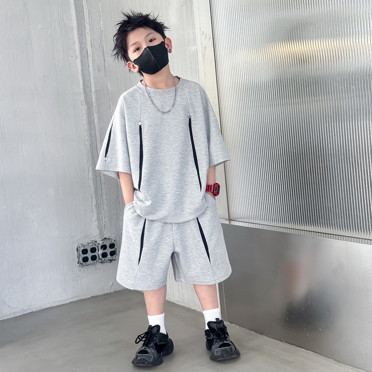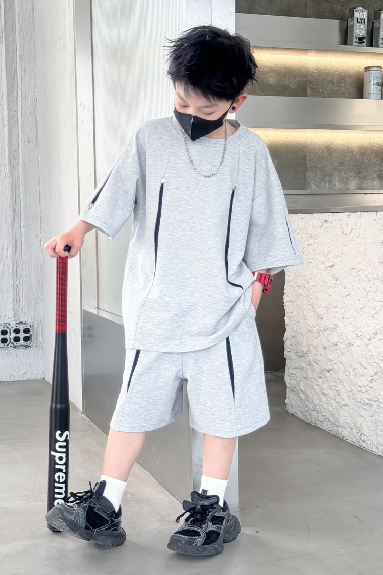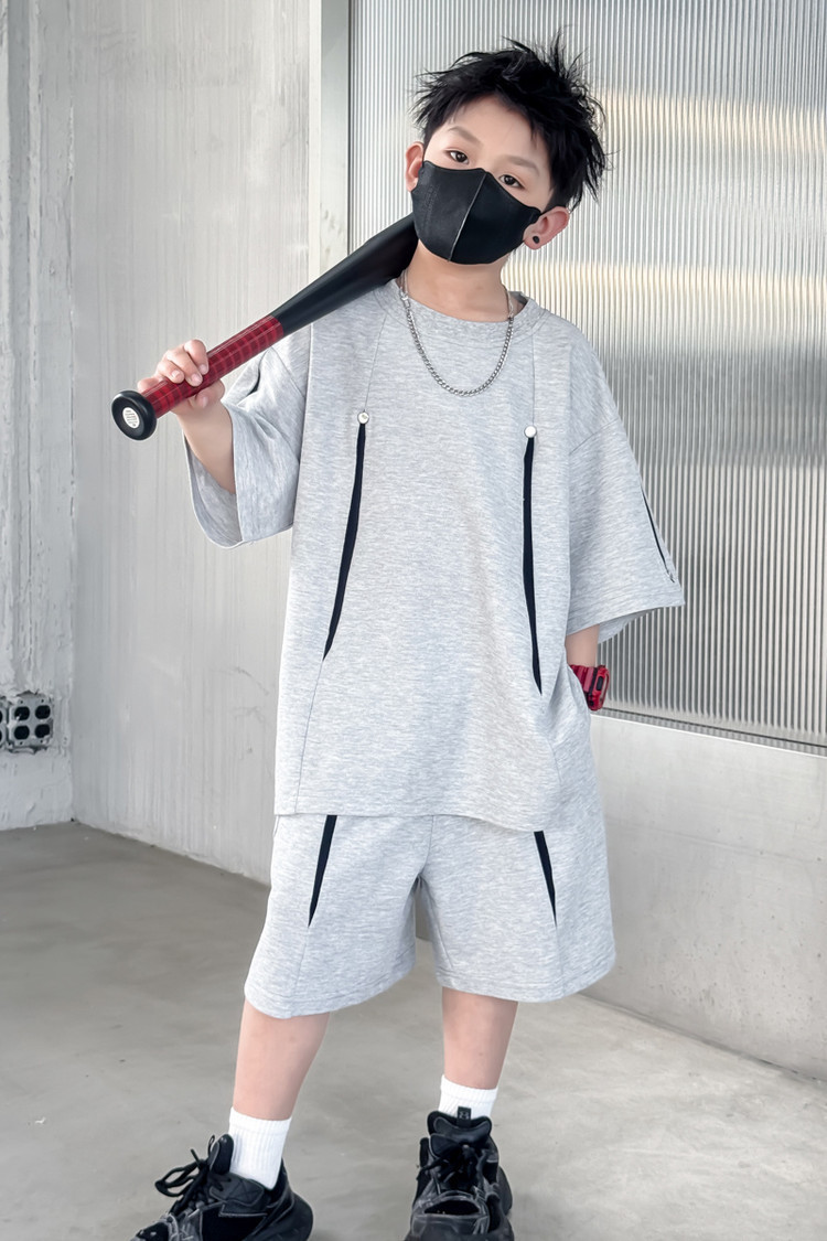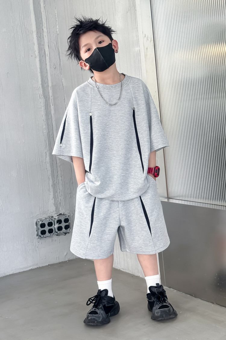 소년 한국어 버전 대비 색상 정장 여름 어린이 느슨한 운동복 반팔 반바지 소년 잘 생긴 투피스 세트 크로스보더스토어 가기
