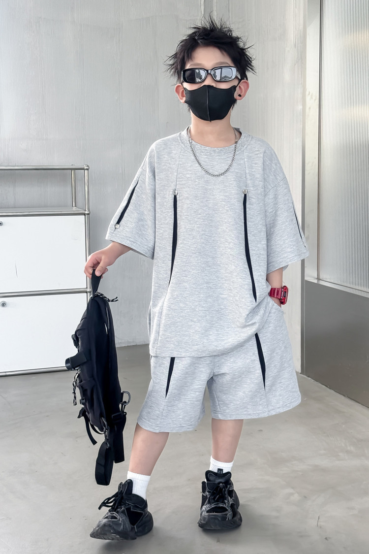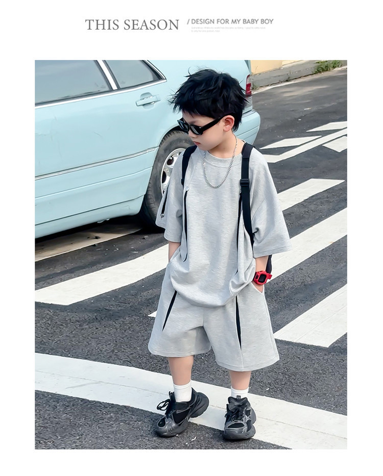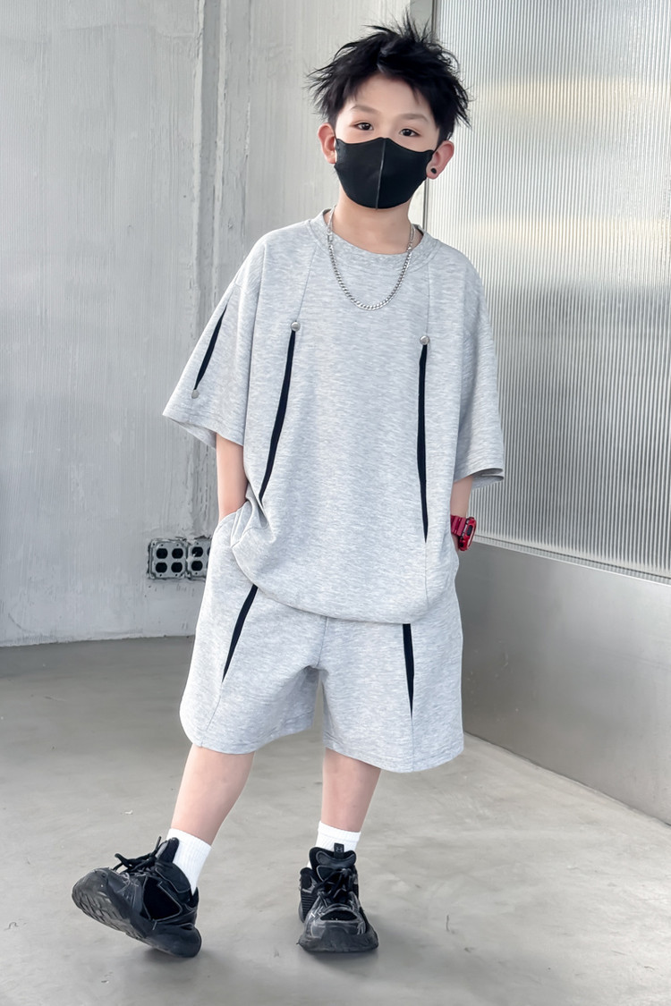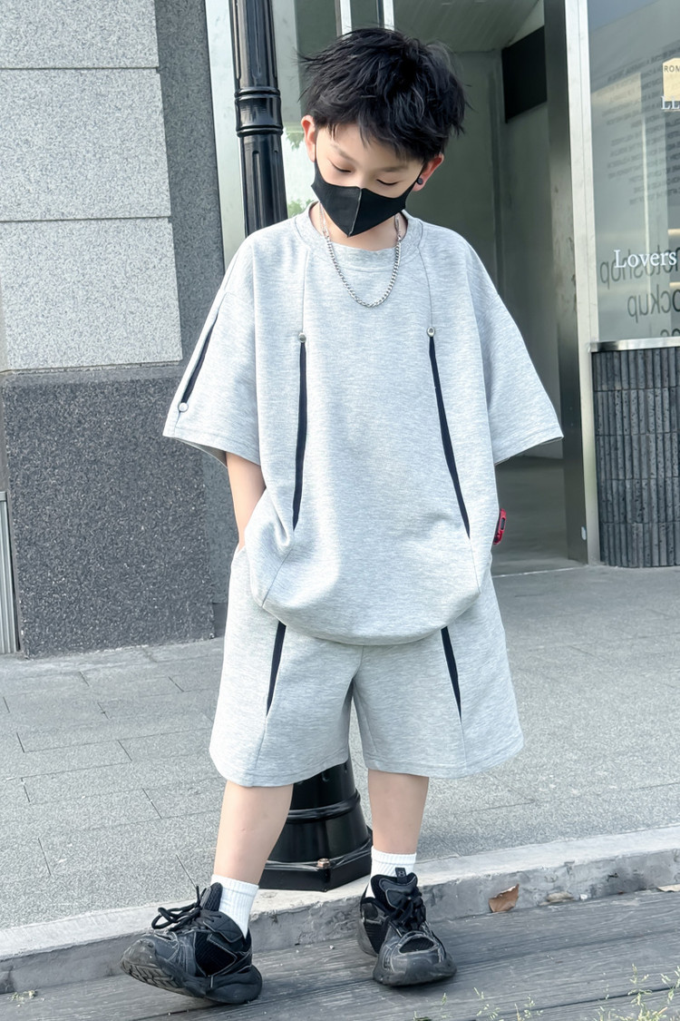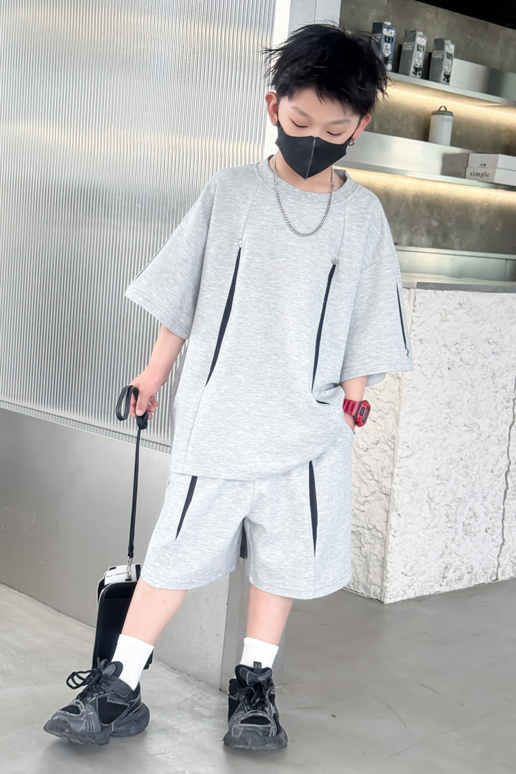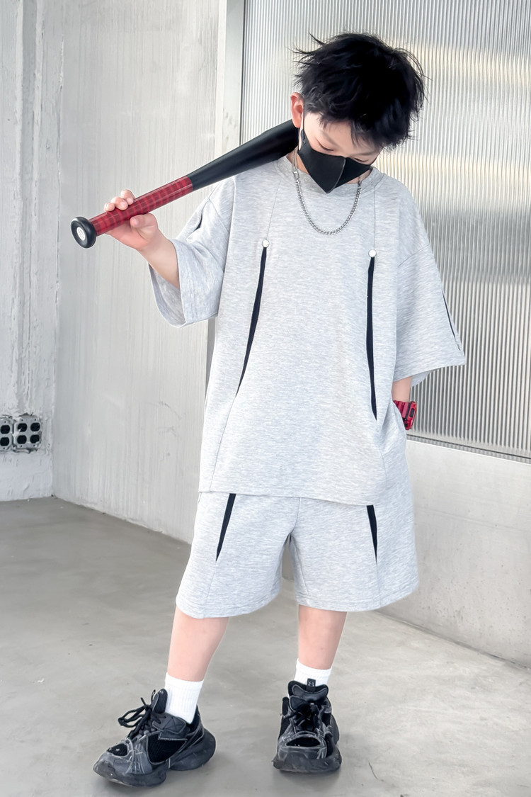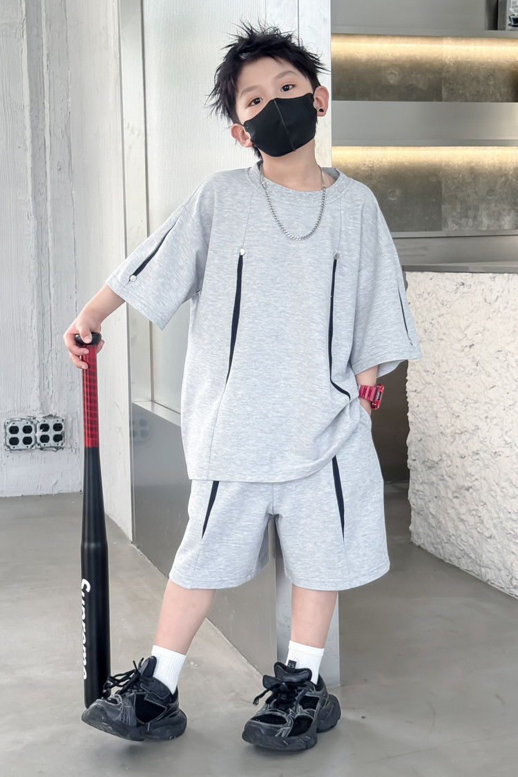 소년 한국어 버전 대비 색상 정장 여름 어린이 느슨한 운동복 반팔 반바지 소년 잘 생긴 투피스 세트 크로스보더스토어 가기