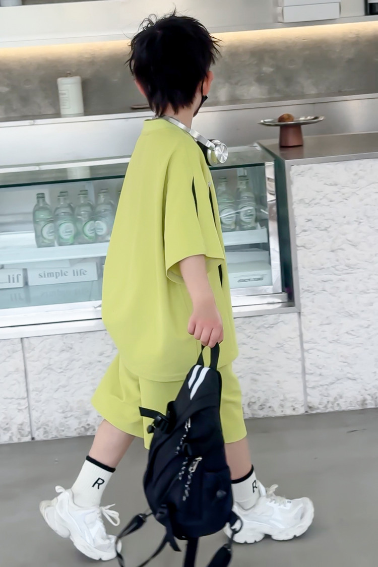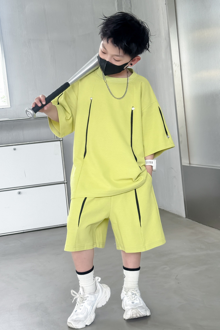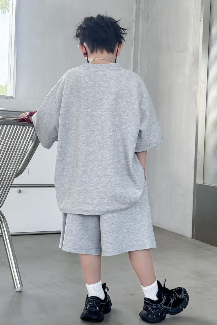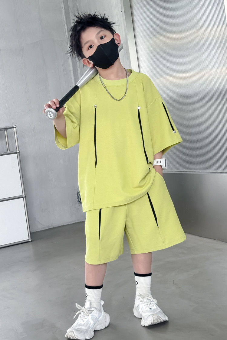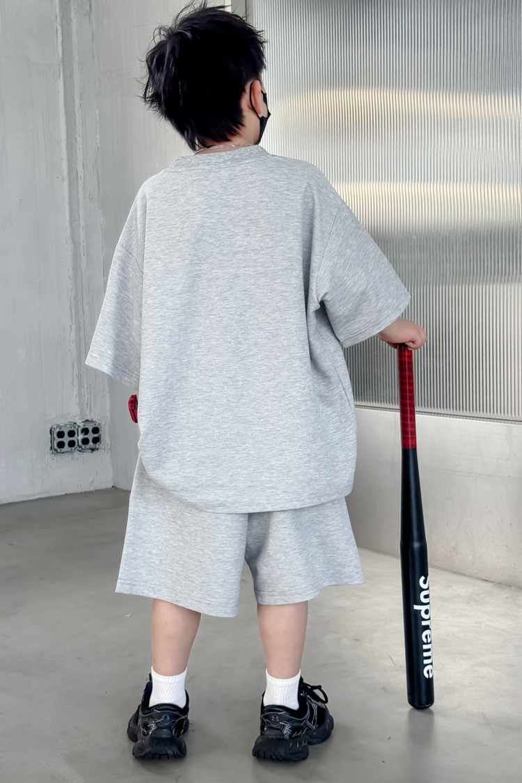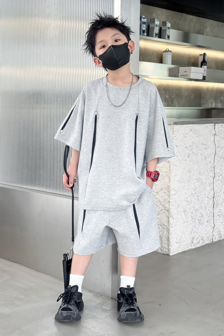 소년 한국어 버전 대비 색상 정장 여름 어린이 느슨한 운동복 반팔 반바지 소년 잘 생긴 투피스 세트 크로스보더스토어 가기