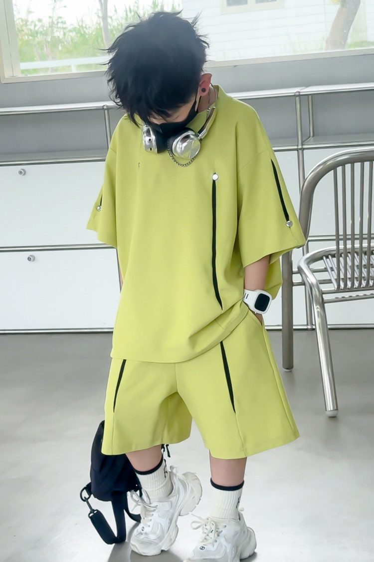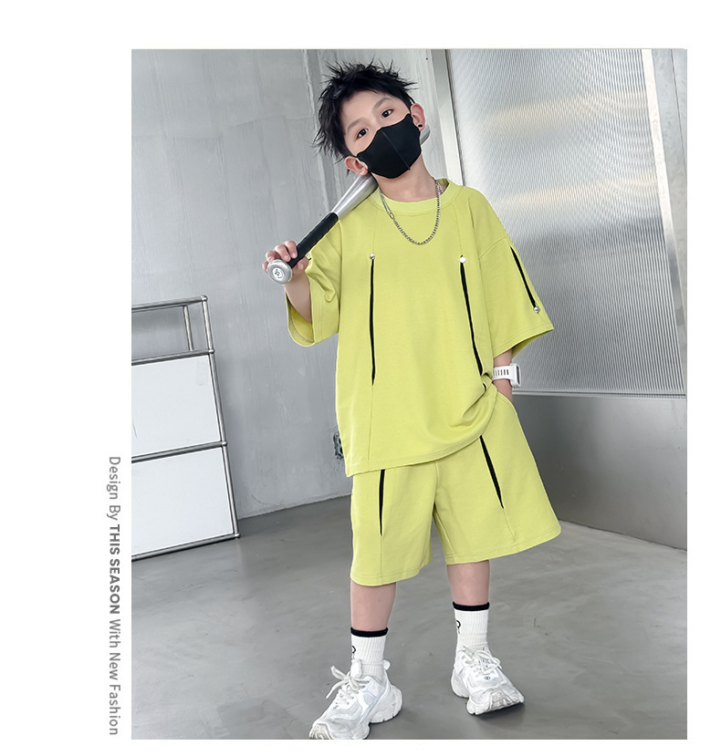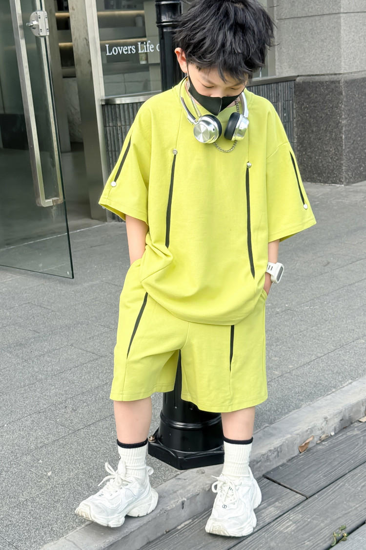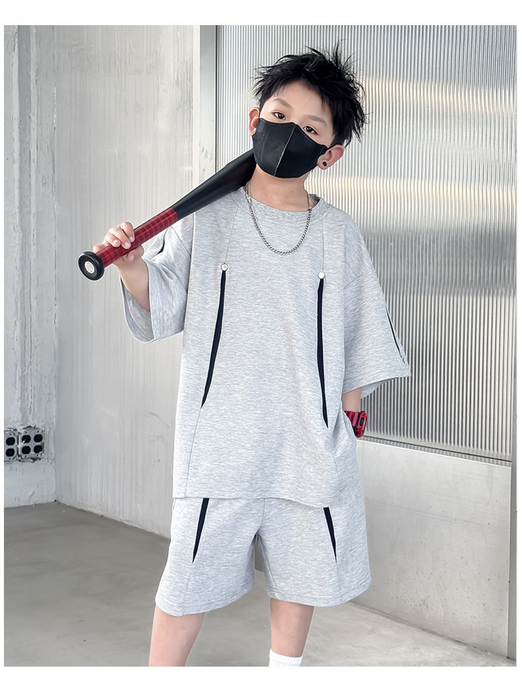 소년 한국어 버전 대비 색상 정장 여름 어린이 느슨한 운동복 반팔 반바지 소년 잘 생긴 투피스 세트 크로스보더
