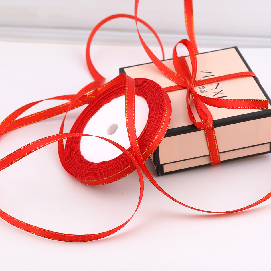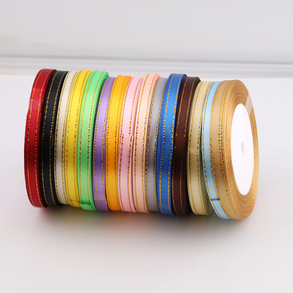 여러 가지 빛깔의 6MM 더블 골드 테두리 리본 diy 수제 선물 상자 케이크 베이킹 꽃 포장 리본 리본 액세서리스토어 가기