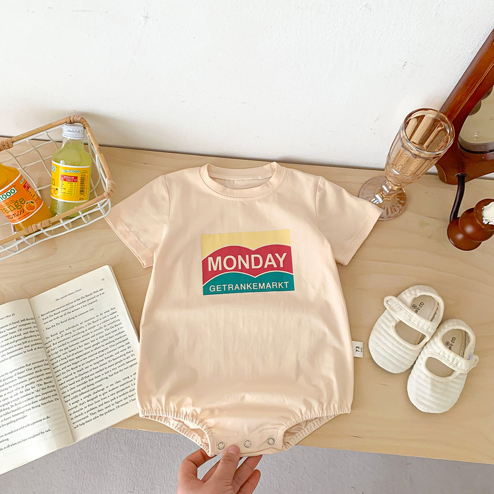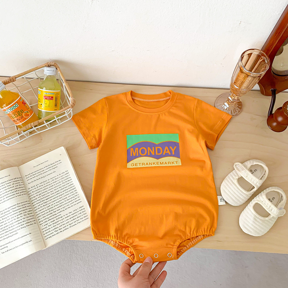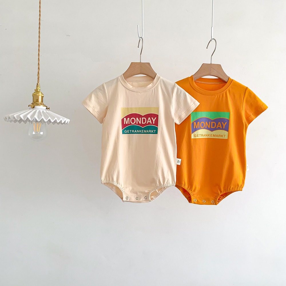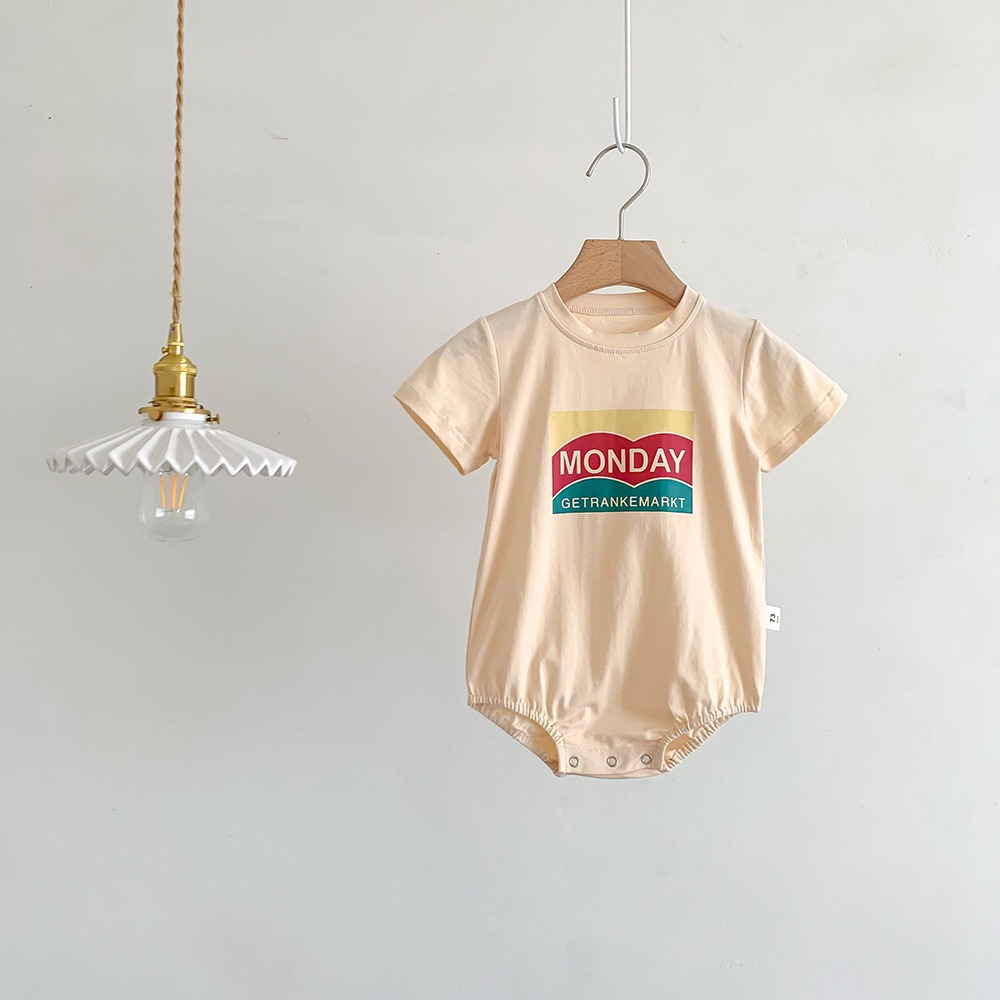 영유아 여름옷, 얇고 귀여운 만화 반팔 외출복, 아기 점프수트, 삼각형 팩옷스토어 가기