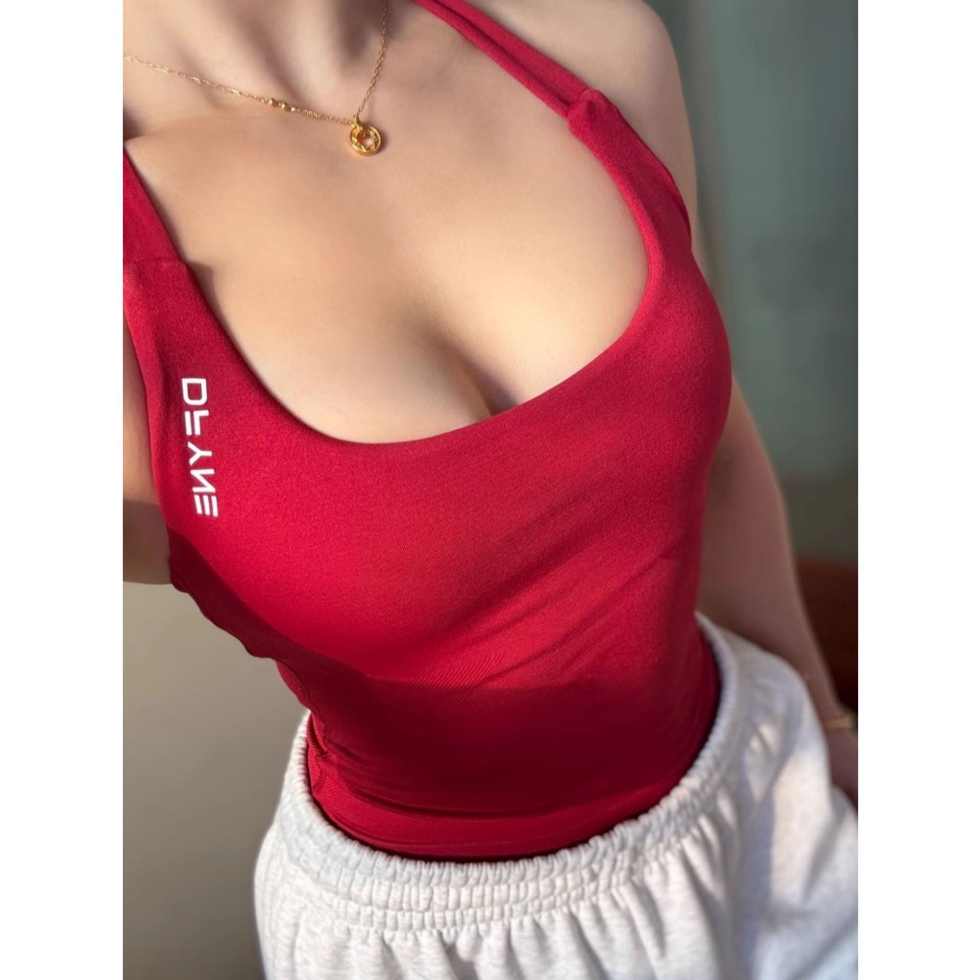 Dfyne 라벨리스 Df 시리즈 유럽 및 미국 필라테스 백리스 가슴 패드 홀터넥 피트니스 올인원 스포츠 조끼 1775