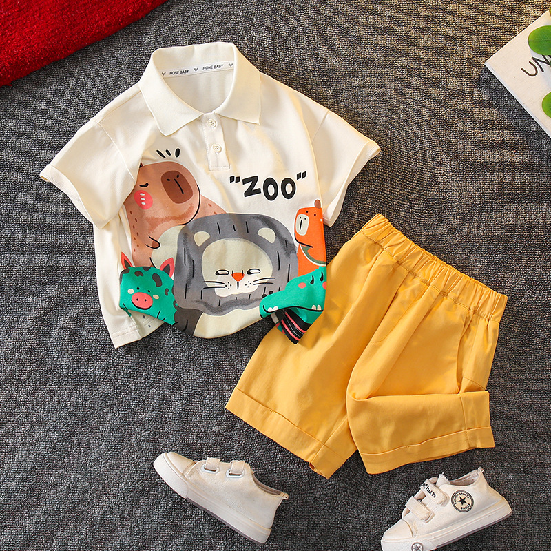 소년 여름 정장 2025 새로운 아동복 반팔 여름 스타일 잘 생긴 아기 소년 여름 폴로 정장 유행스토어 가기