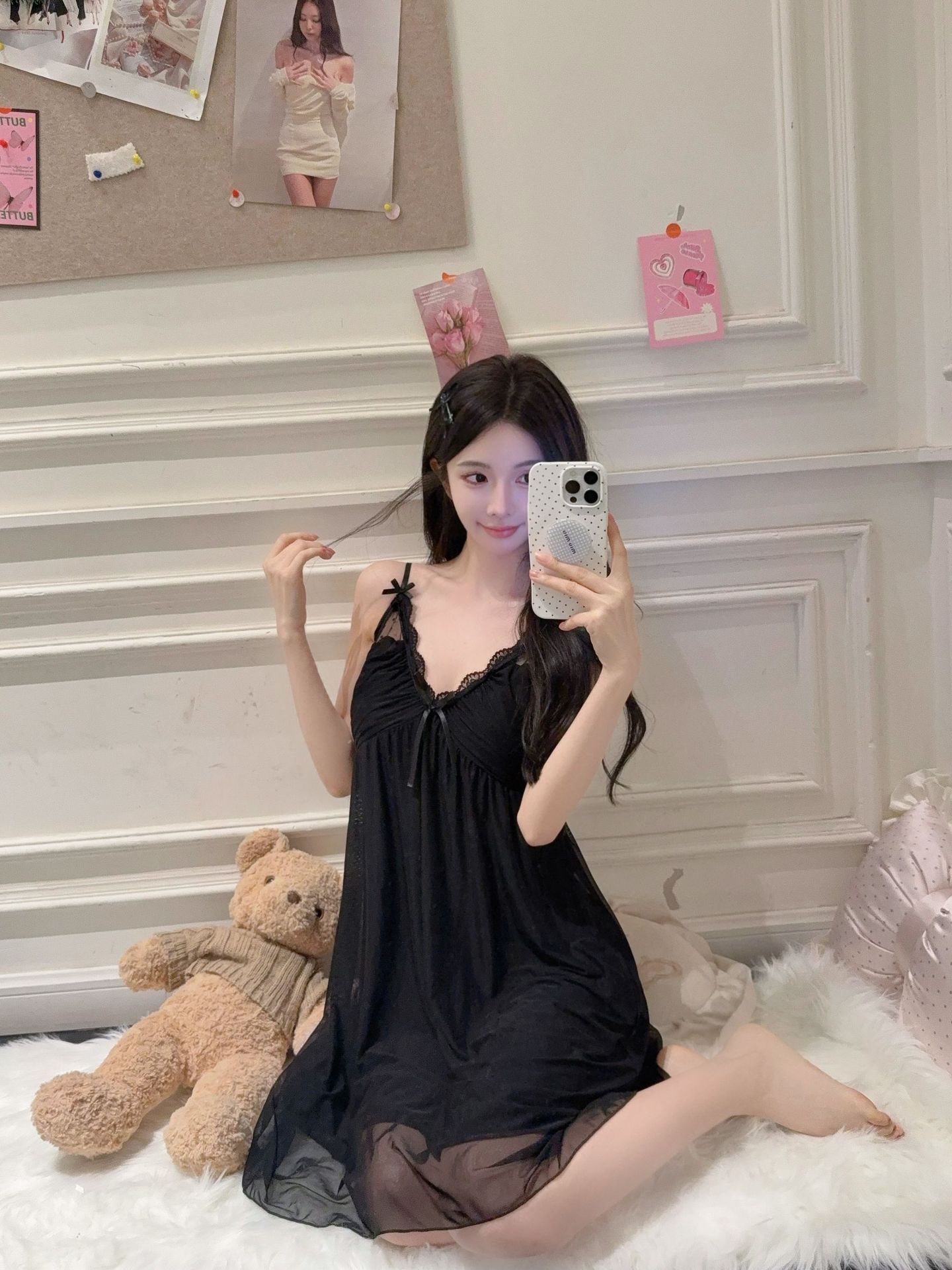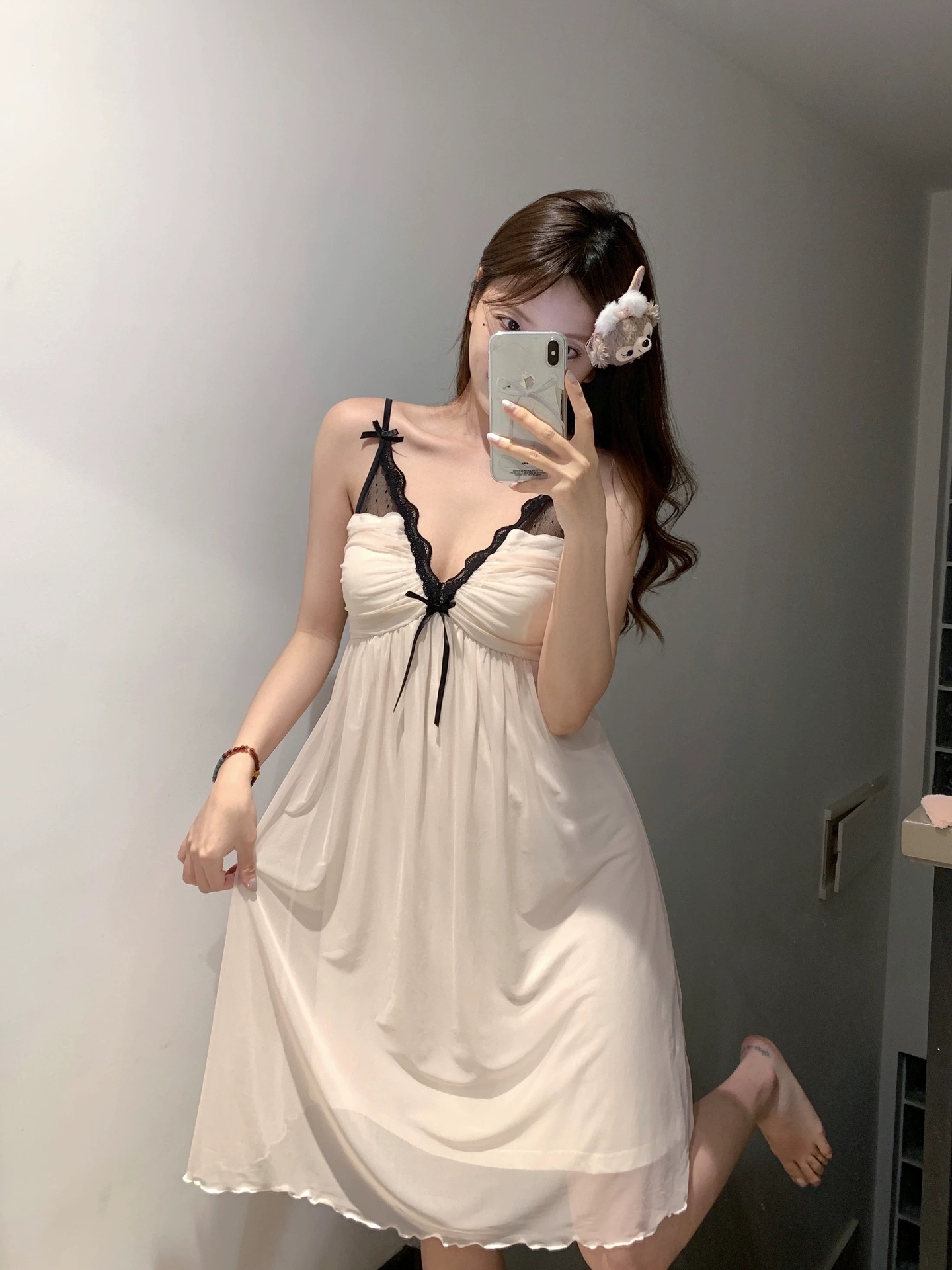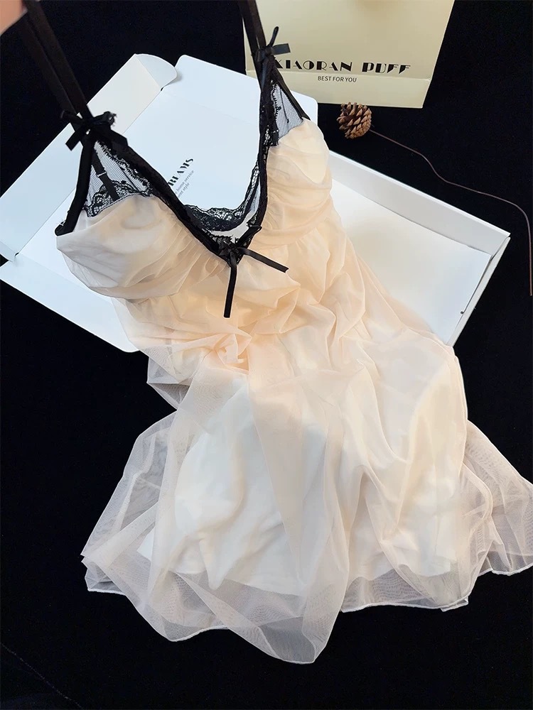 여름 섹시한 슬링 나이트 가운 여성의 순수한 욕망 스타일 달콤한 메쉬 소녀의 파자마, 가슴 패드 푸시 업 프렌치 나이트 가운