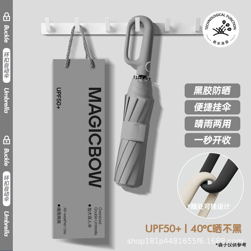 • [편리한 버클이 달린 자동우산] 32본 유리섬유 강화 라이트 포그 그레이