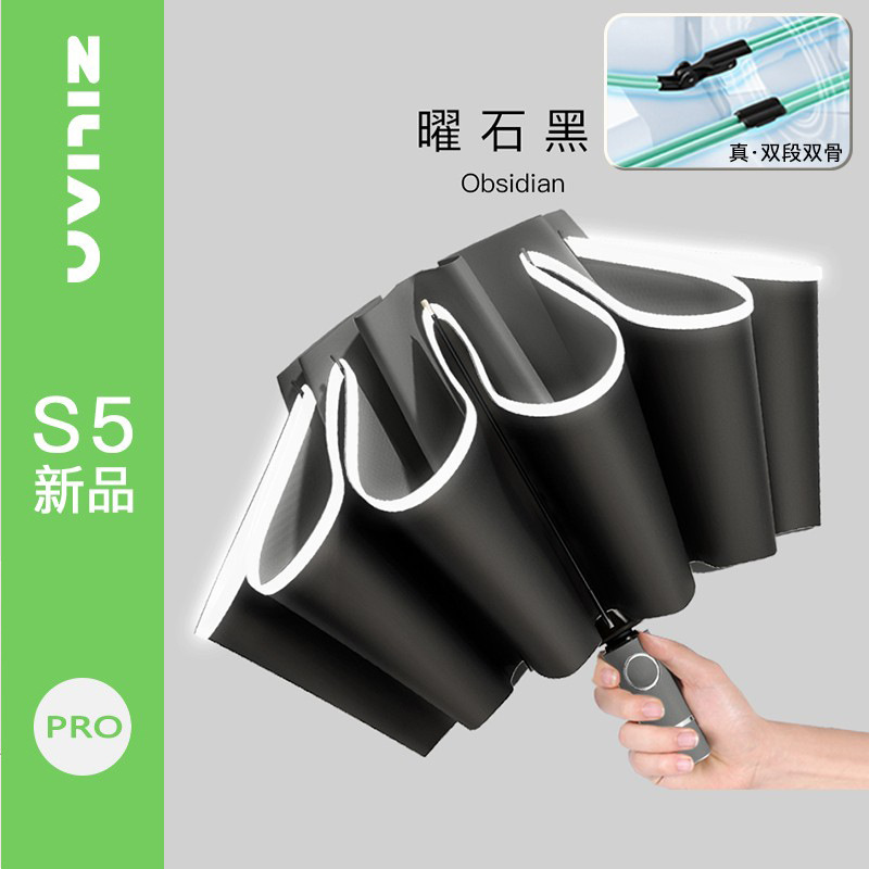 • [편리한 버클이 달린 자동우산] 32본 유리섬유 강화-흑요석 블랙