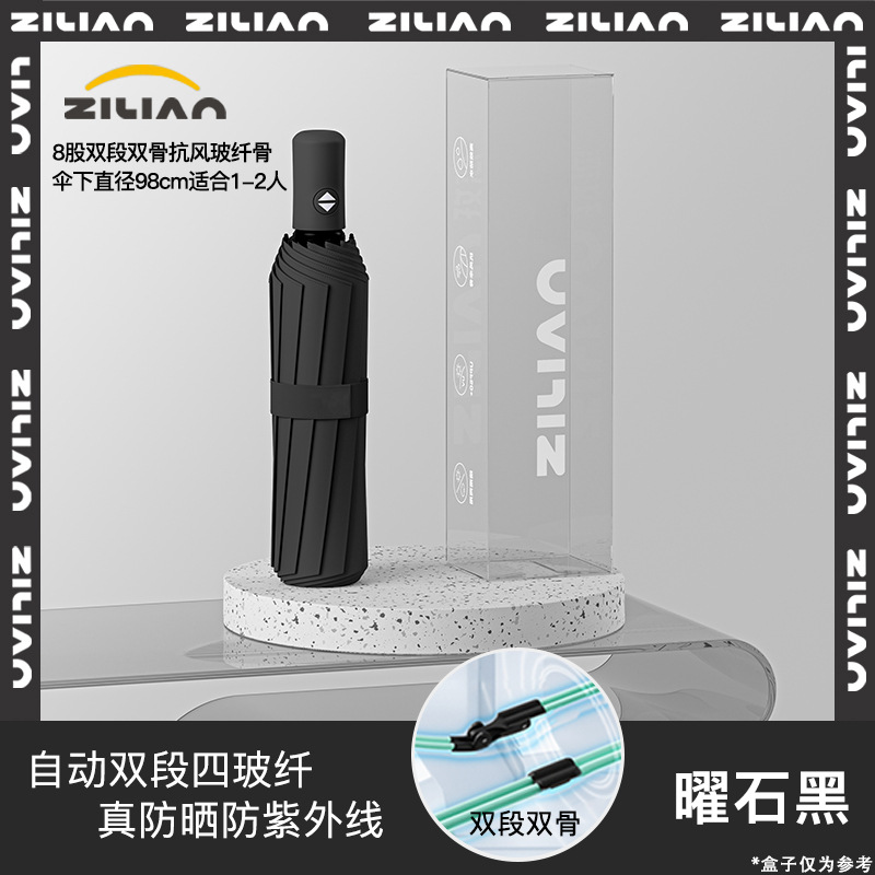 • 8본 수동 자외선 차단 우산 - 흑요석 블랙