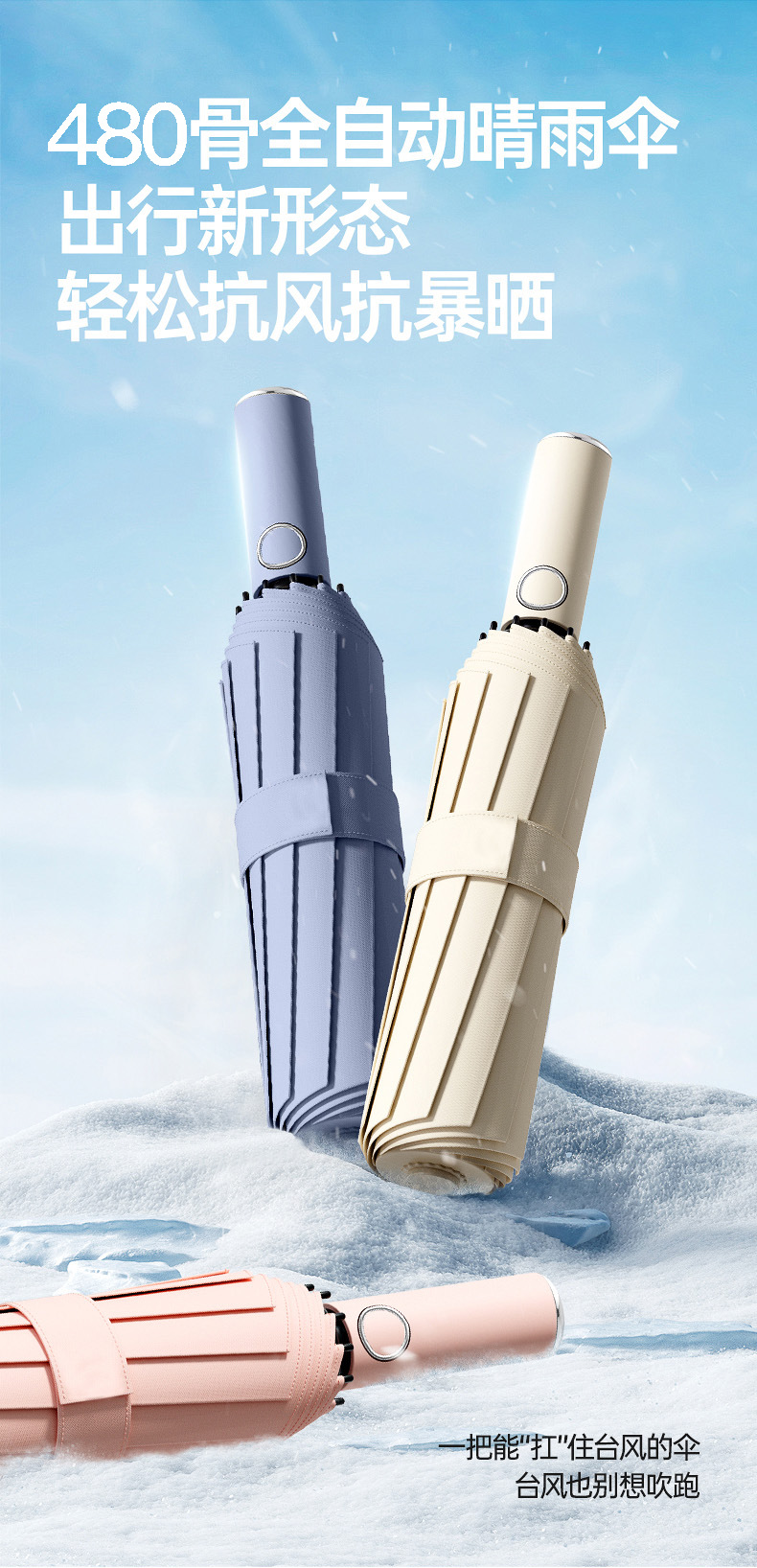 • 한여름 파우더 [신형 480본 강화섬유 우산꽂이] 강풍, 폭우에도 UPF50+