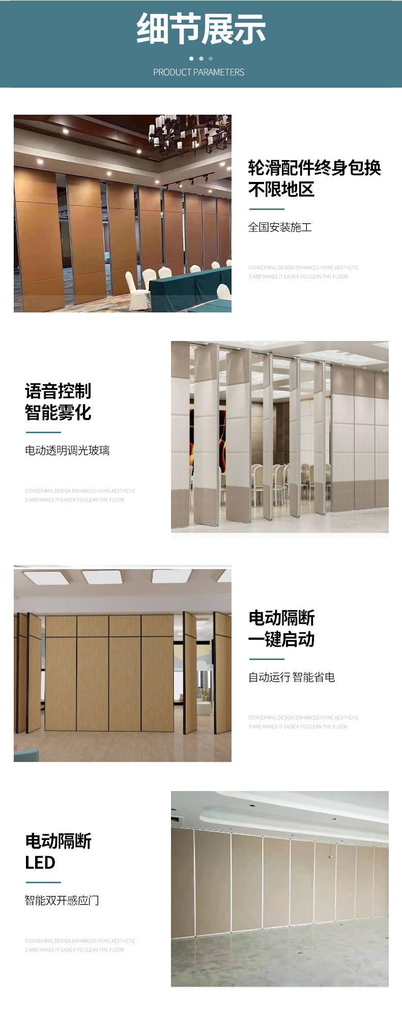 호텔 이동식 칸막이 벽, 호텔 박스 회의실 방음벽, 원클릭 시작 지능형 자동 접이식 보드스토어 가기