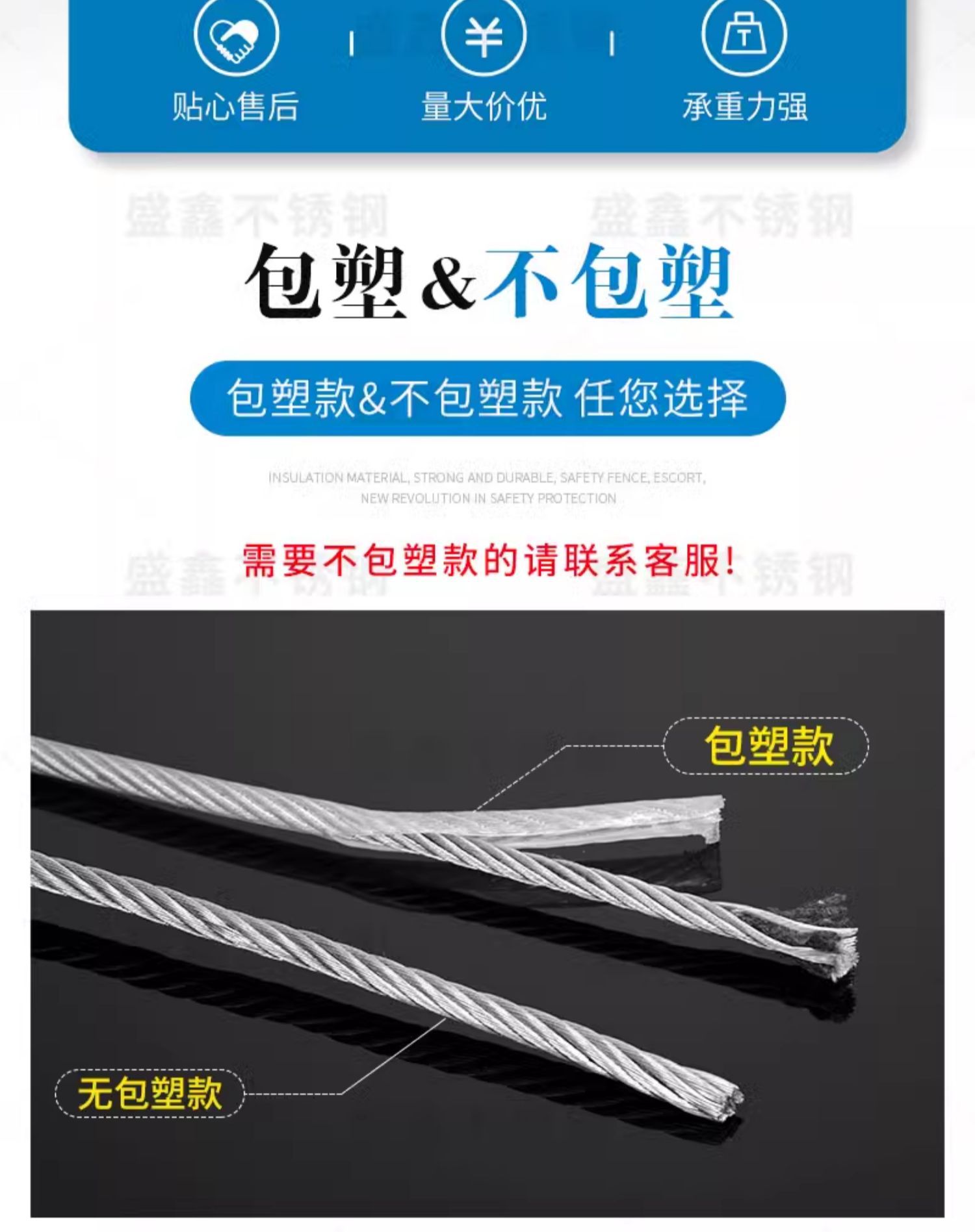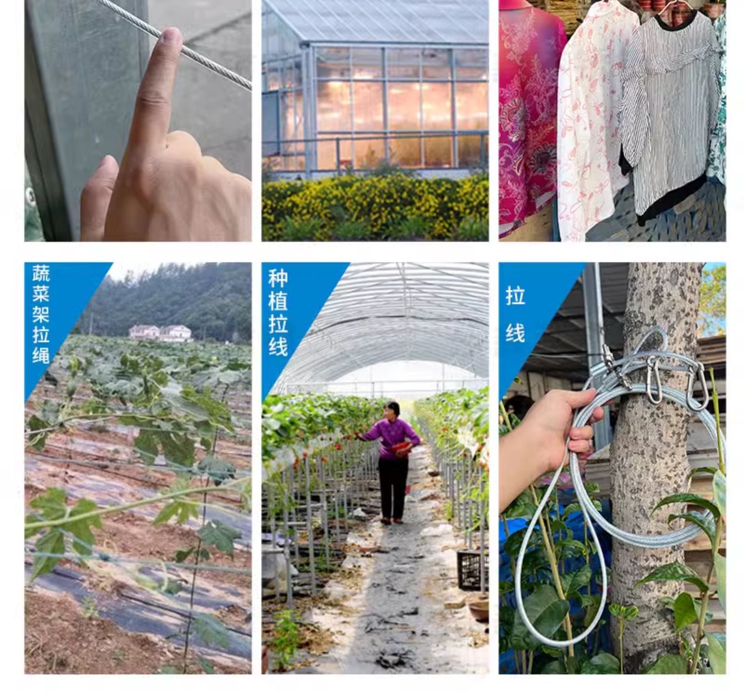 투명 아연 도금 플라스틱 코팅 강철 와이어 로프 온실 포도 랙 차양 그물 가죽으로 코팅 된 부드럽고 얇은 2345681012mm스토어 가기
