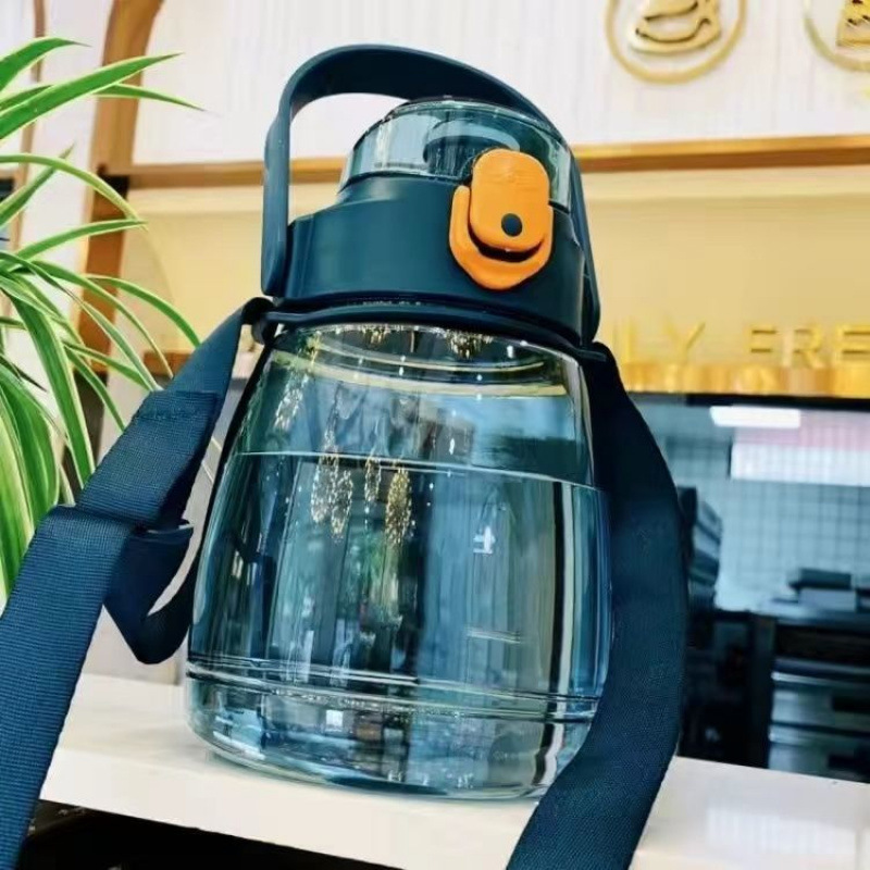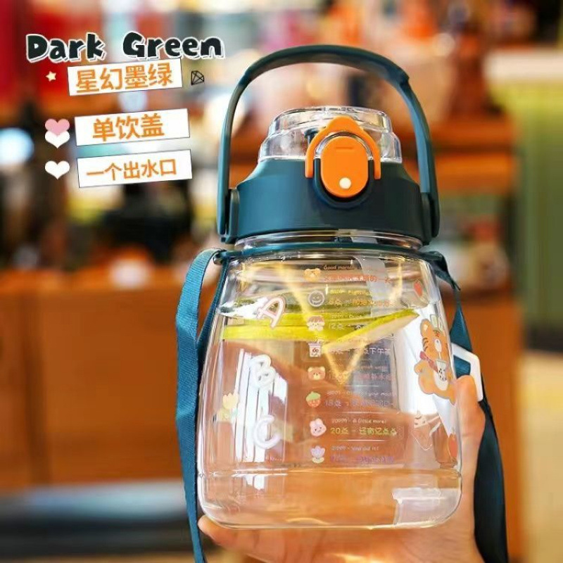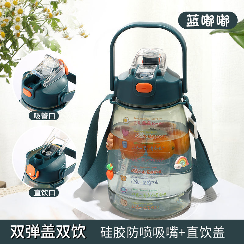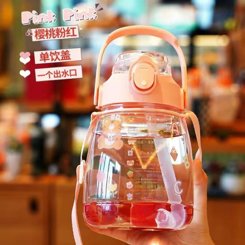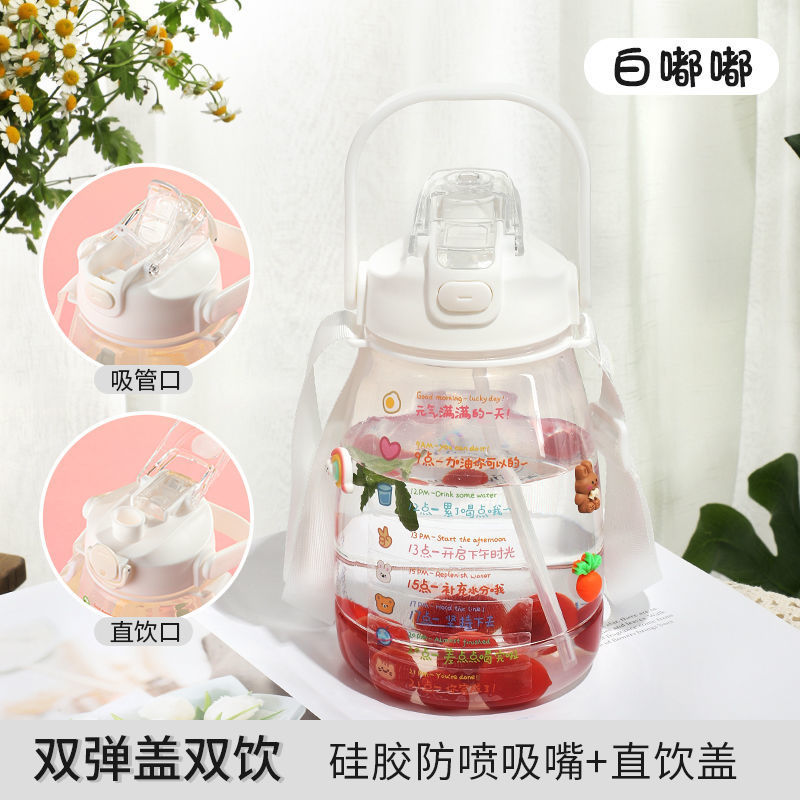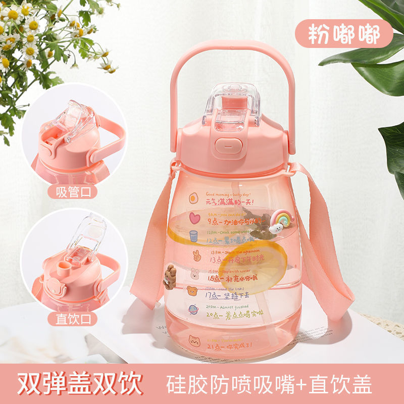 여성용 빅 배 물컵, 빨대가 달린 대용량 귀여운 플라스틱 컵, 대형 여름 인터넷 연예인 휴대용 스포츠 물병