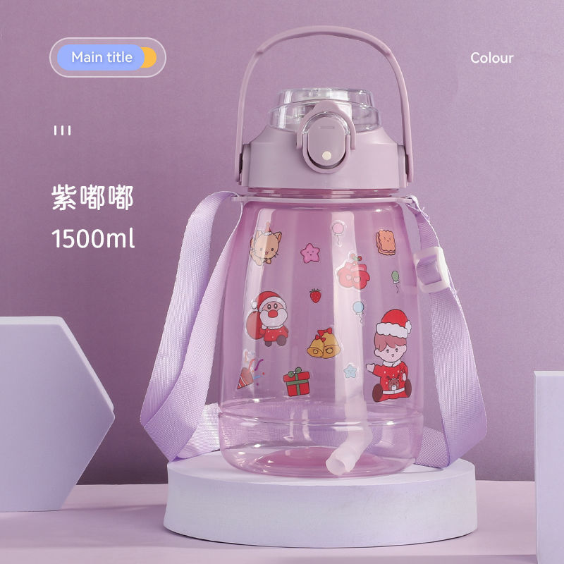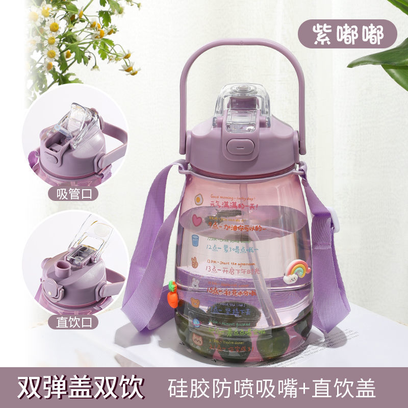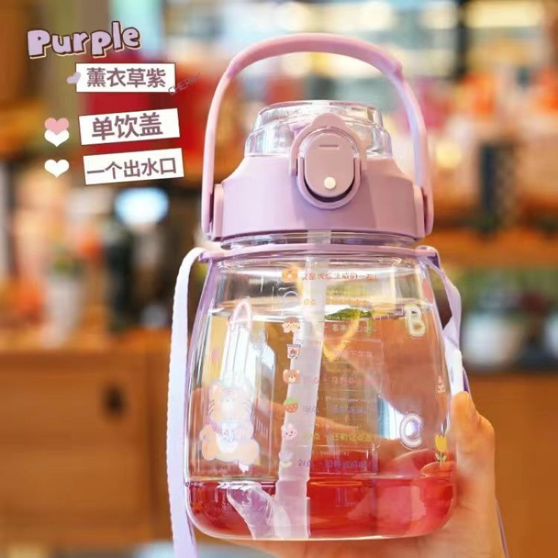 • 1501ml 보라색 + 이중 음료 뚜껑 + 스트랩 + 스티커