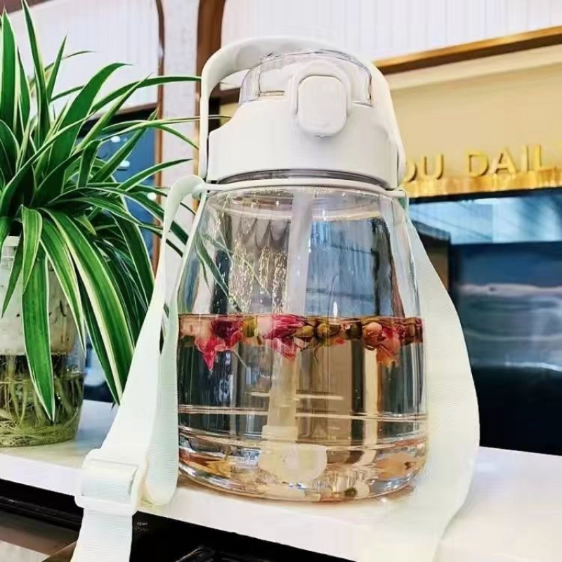 여성용 빅 배 물컵, 빨대가 달린 대용량 귀여운 플라스틱 컵, 대형 여름 인터넷 연예인 휴대용 스포츠 물병스토어 가기
