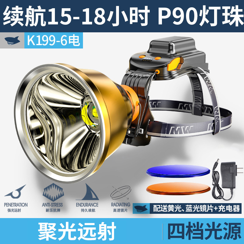 • K199-P9 대형 라이트 컵 고휘도 헤드라이트 [P90 램프 비드, 내장 배터리 12000mAh]