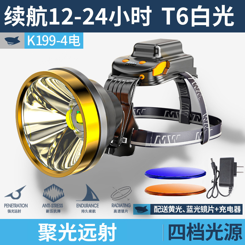 • K199-T6 대형 라이트 컵 고휘도 헤드라이트 [T6 램프 비드, 내장 배터리 8000mAh]