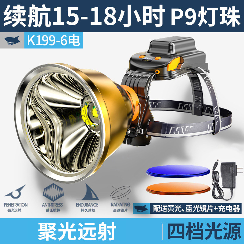 • K199-P9 대형 라이트 컵 고휘도 헤드라이트 [P9 램프 비드, 내장 배터리 12000mAh]