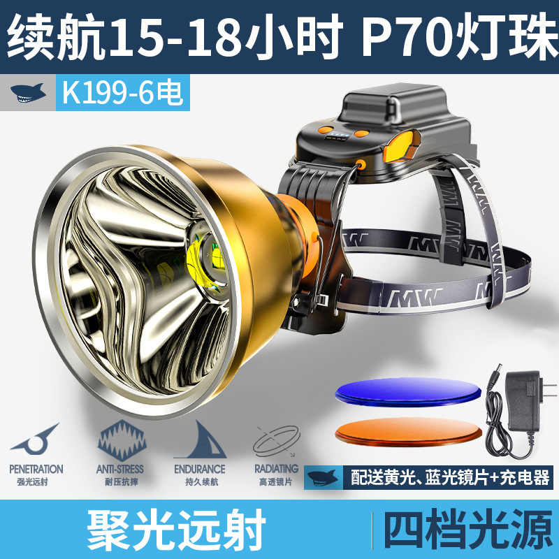 • K199-P70 대형 라이트 컵 고휘도 헤드라이트 [P70 램프 비드, 내장 배터리 12000mAh]