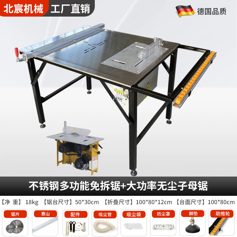 • [무료 범용 휠] 확장 테이블 슬라이딩 테이블 톱 + 고출력 먼지 없는 더블 톱