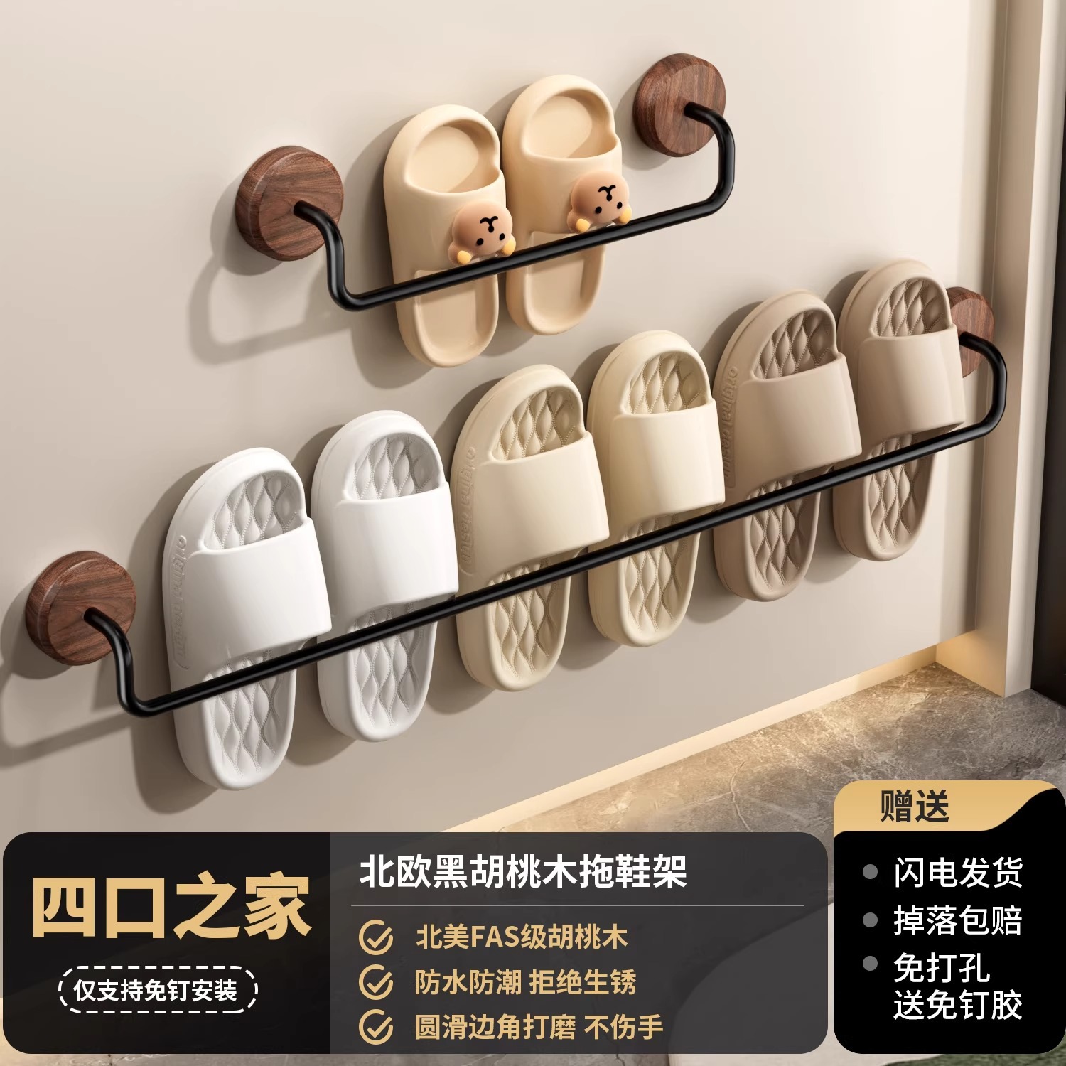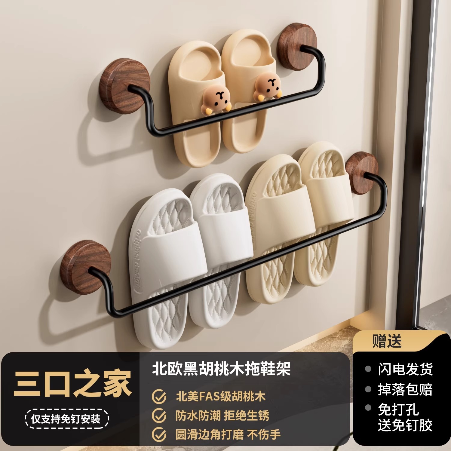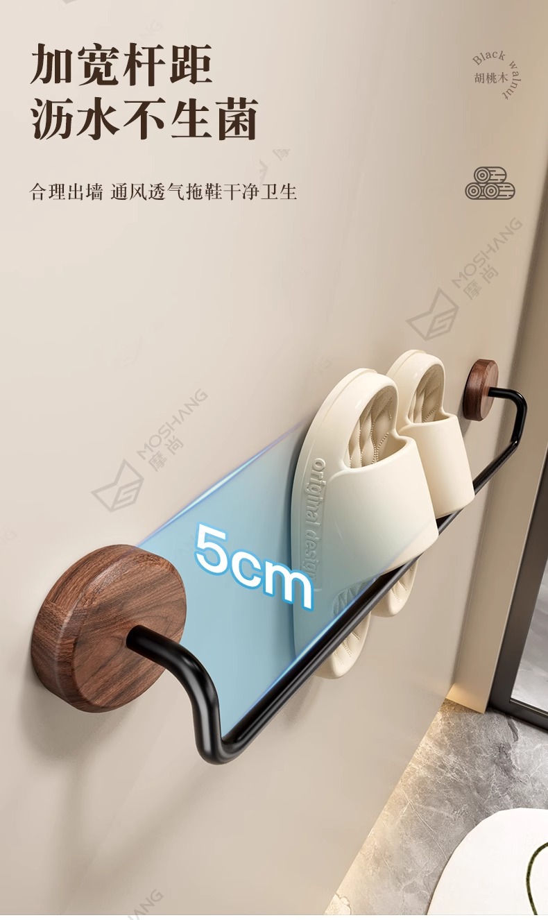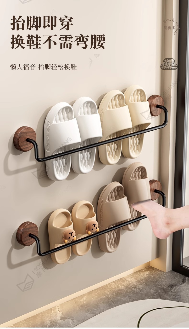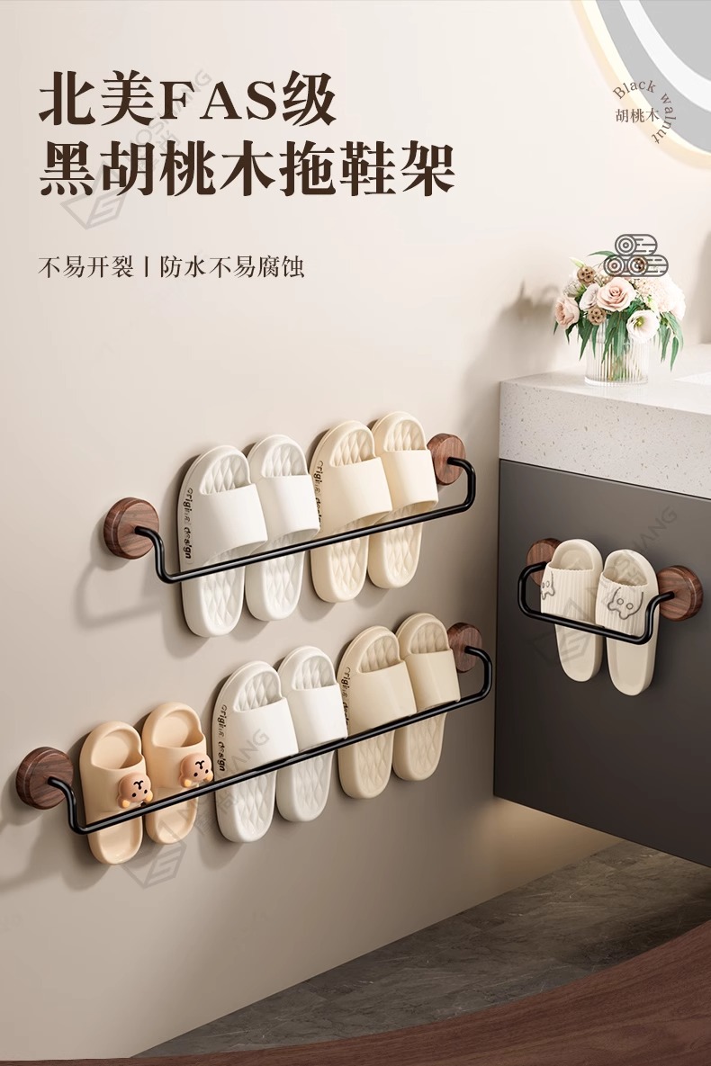 구멍이 없는 호두나무 욕실 슬리퍼 걸이, 욕실 화장실 신발 걸이, 현관문 뒤 보관함