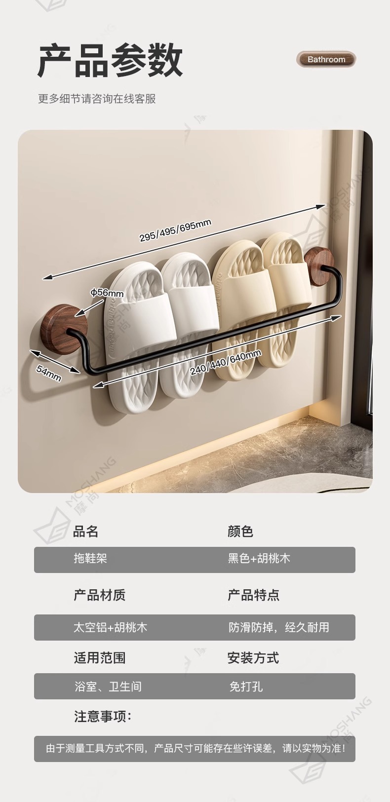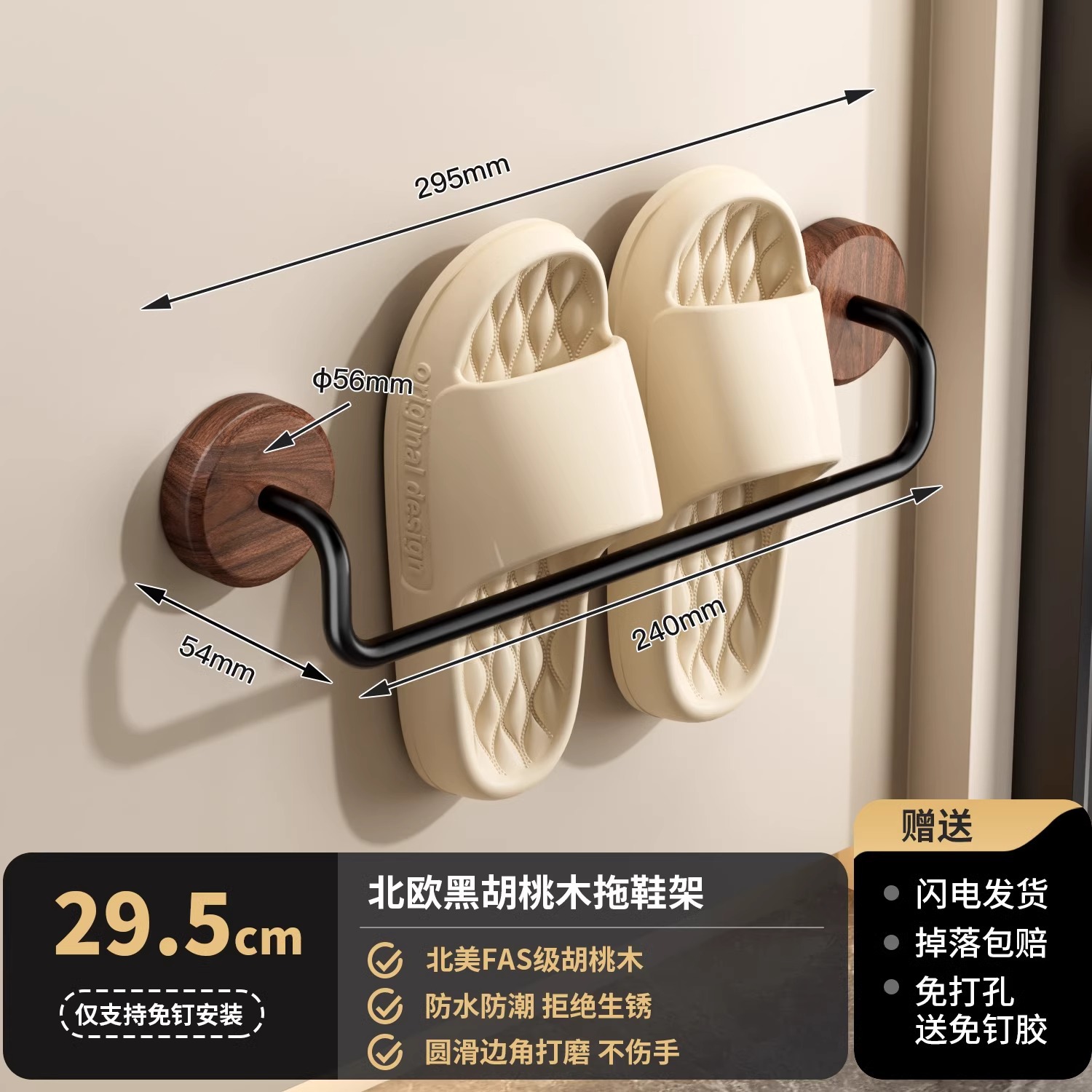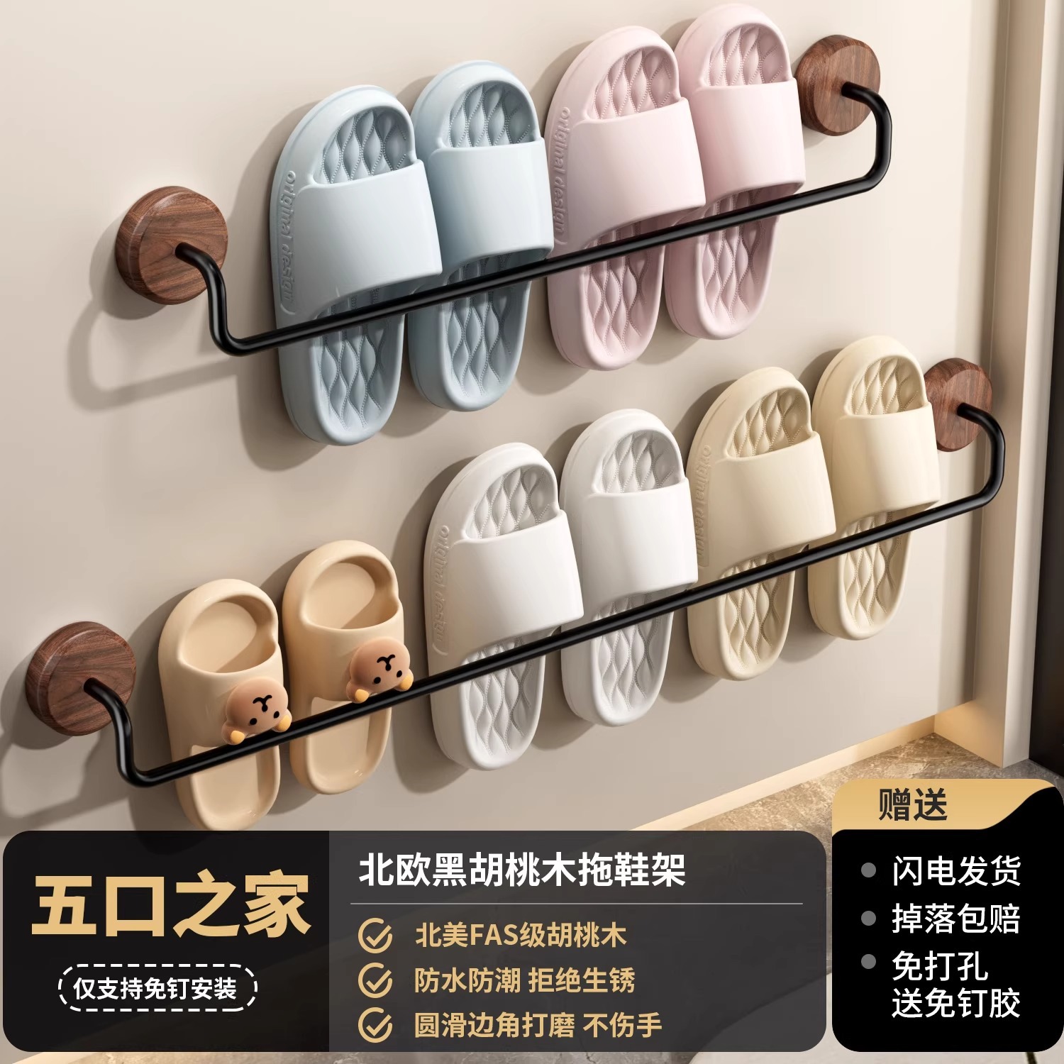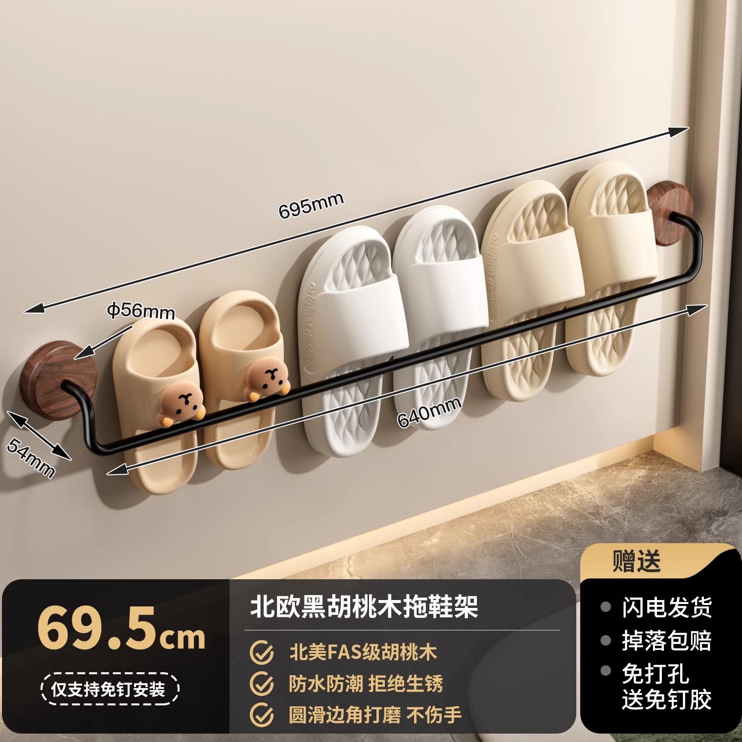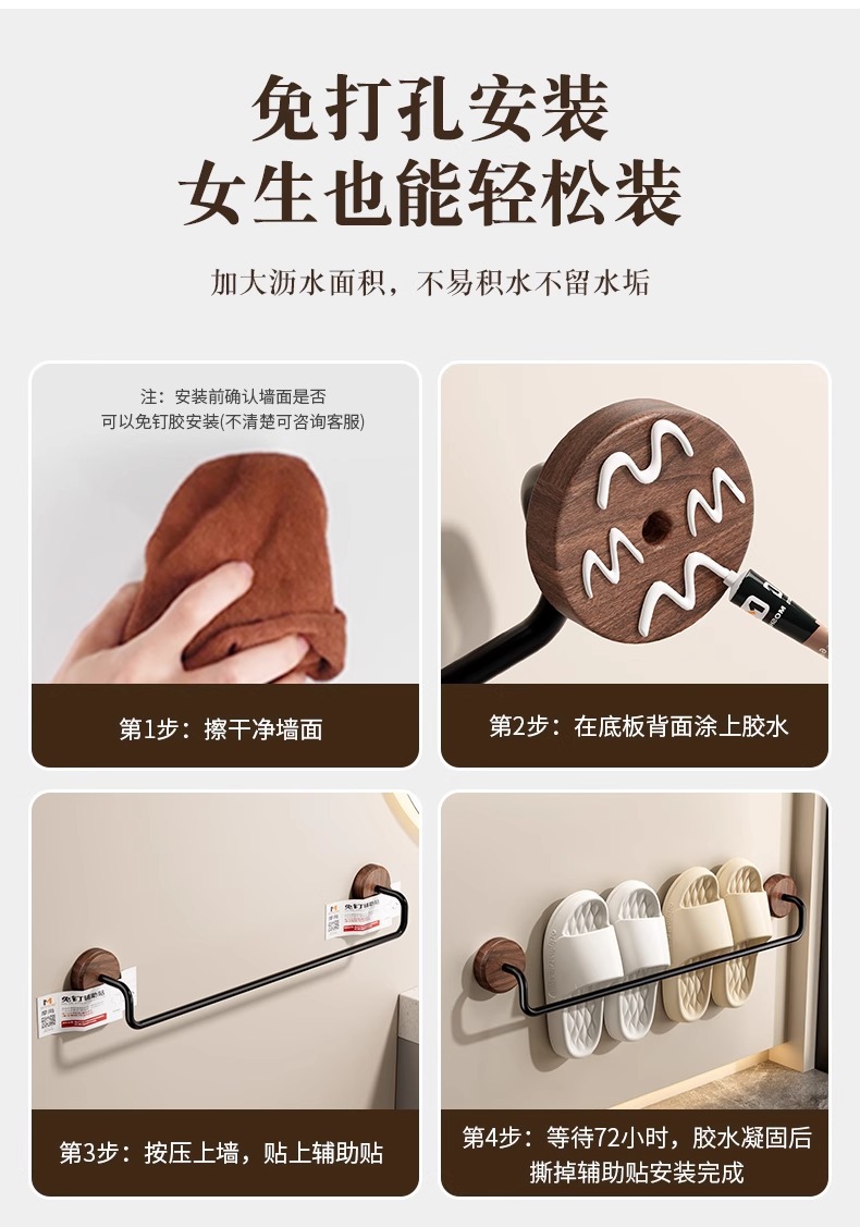 구멍이 없는 호두나무 욕실 슬리퍼 걸이, 욕실 화장실 신발 걸이, 현관문 뒤 보관함