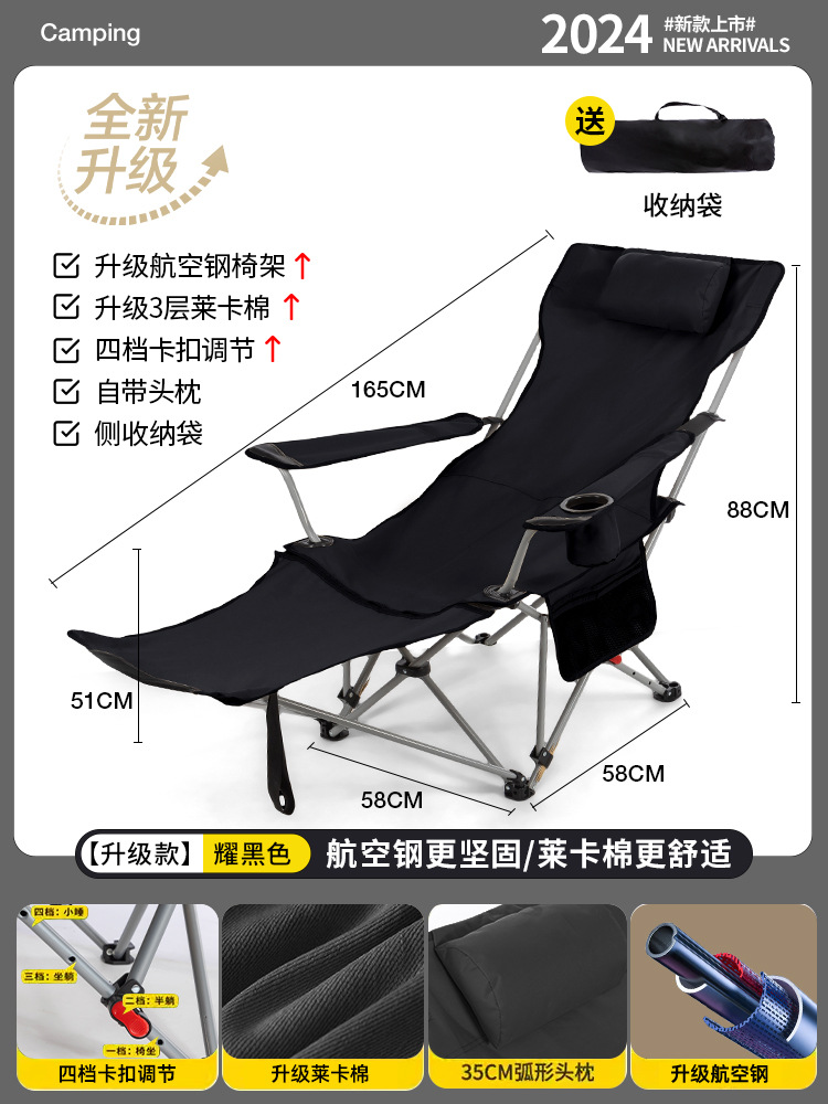 • [강화된 전복방지/두꺼워진 머리받침] 앉기, 누우기 2단계 조절 가능 - 블랙
