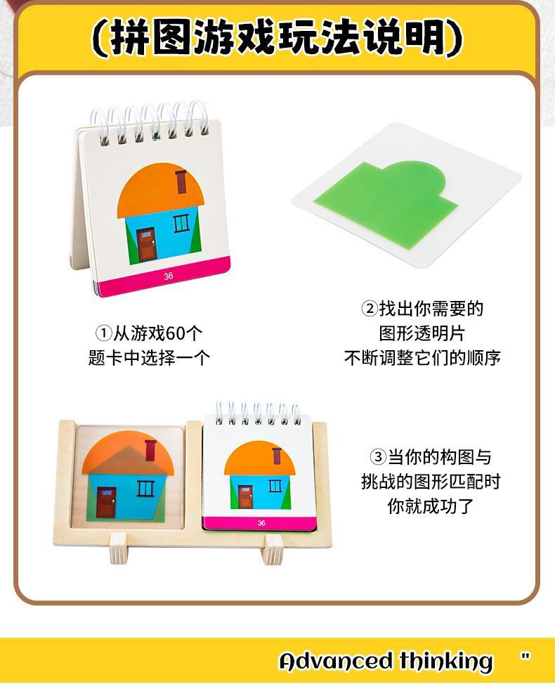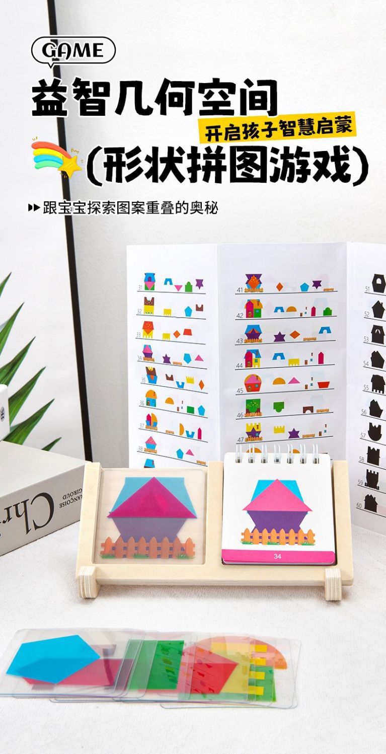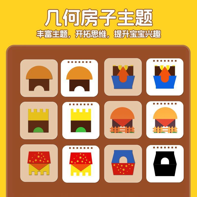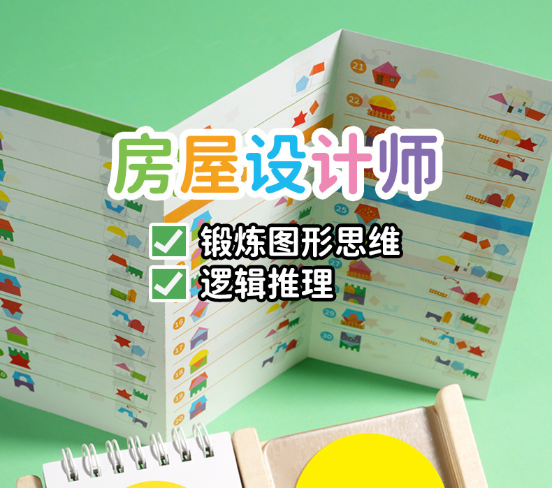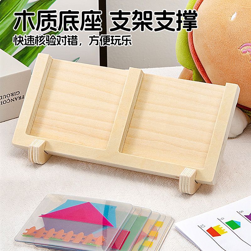 어린이 직소 퍼즐 기하학적 논리 생각 빌딩 블록 하우스 보드 게임 공간 두뇌 훈련 나무 장난감