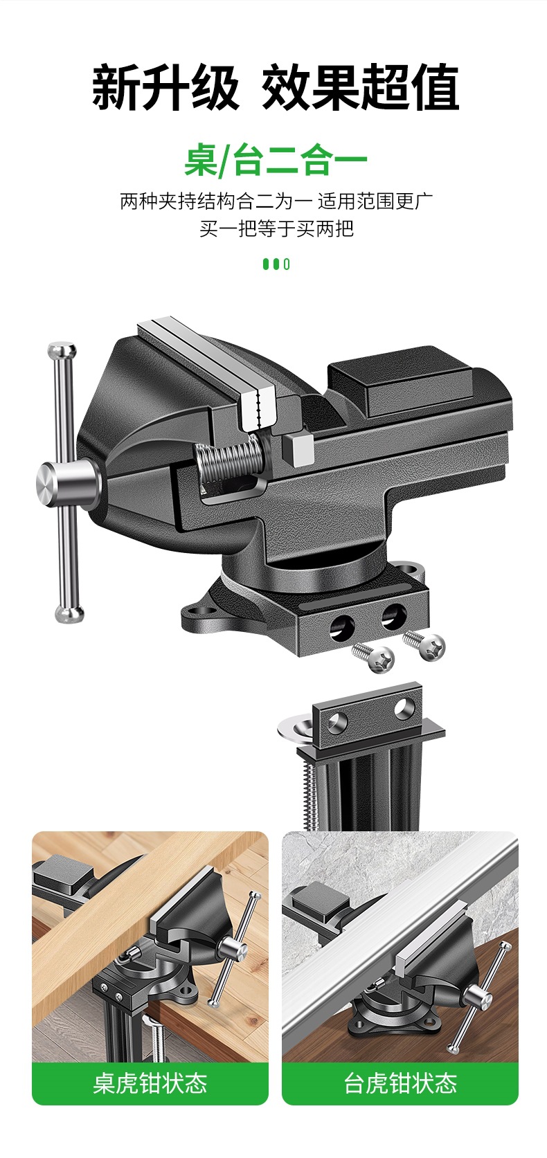 Baolian 바이스 소형 다기능 가정용 범용 작업대 바이스 미니 테이블 이중 목적 바이스 목공 Jinye