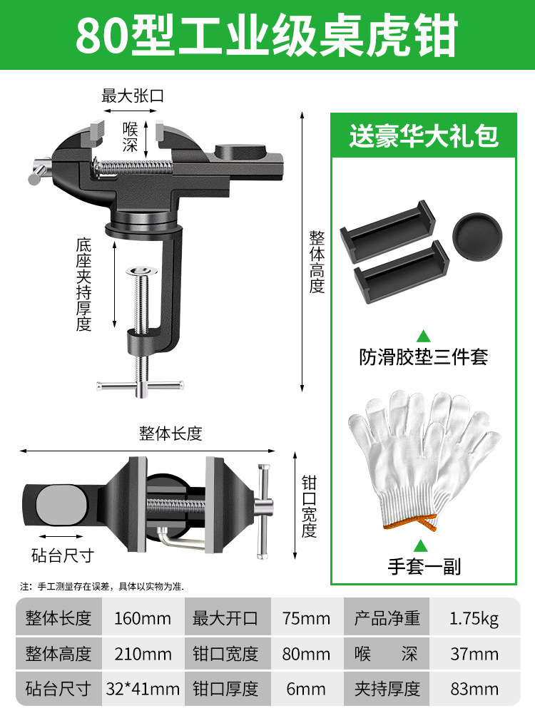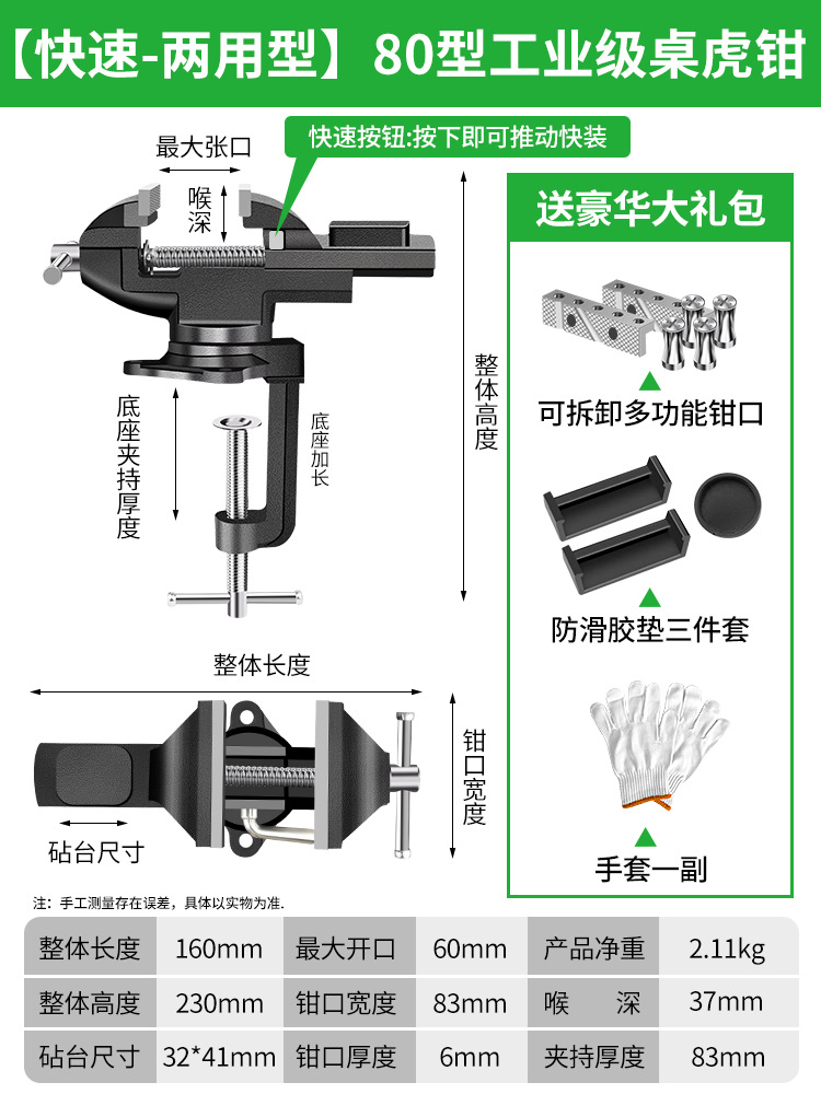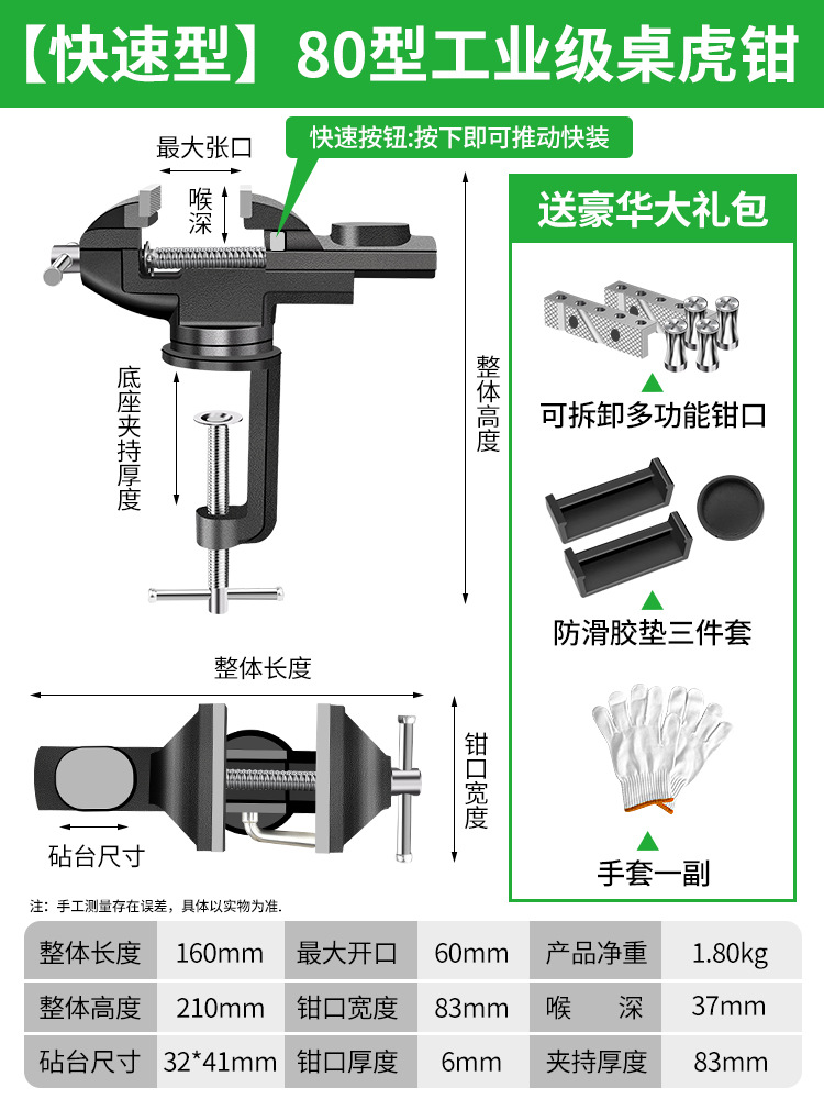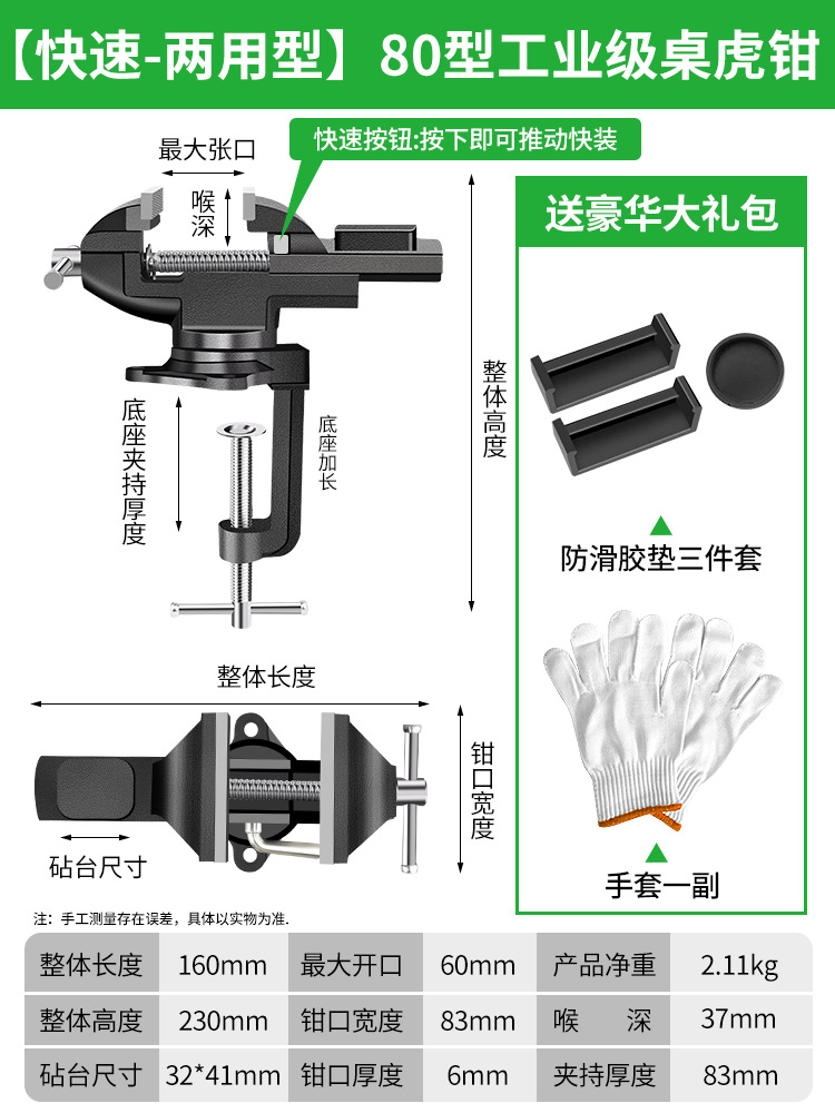• [빠른 이중 목적 유형] 80 조 주강 바이스 + 탈착식 다기능 조 (미끄럼 방지 매트 + 장갑 포함)