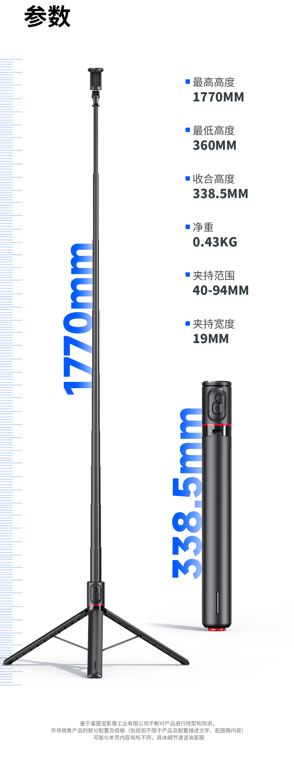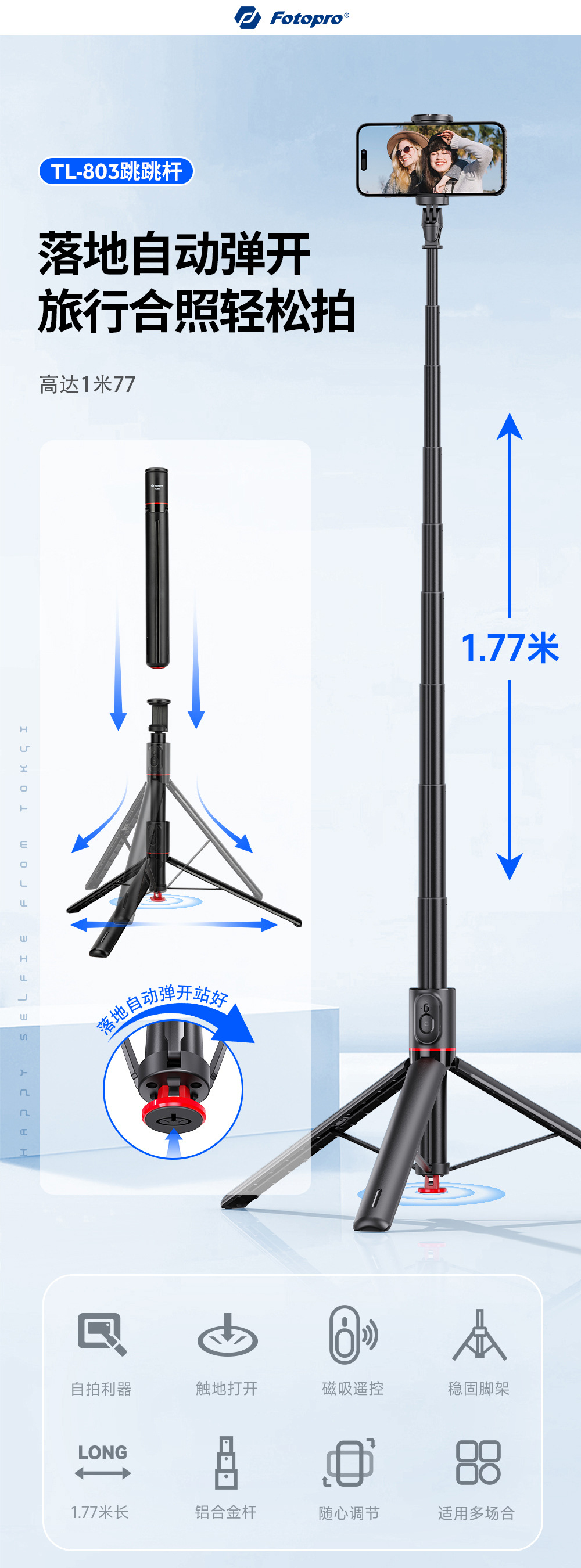 [라그 1.77m ] Futubao TL803 점프 폴 휴대용 휴대폰 셀카봉 플로어 스탠드 컴팩트 미니