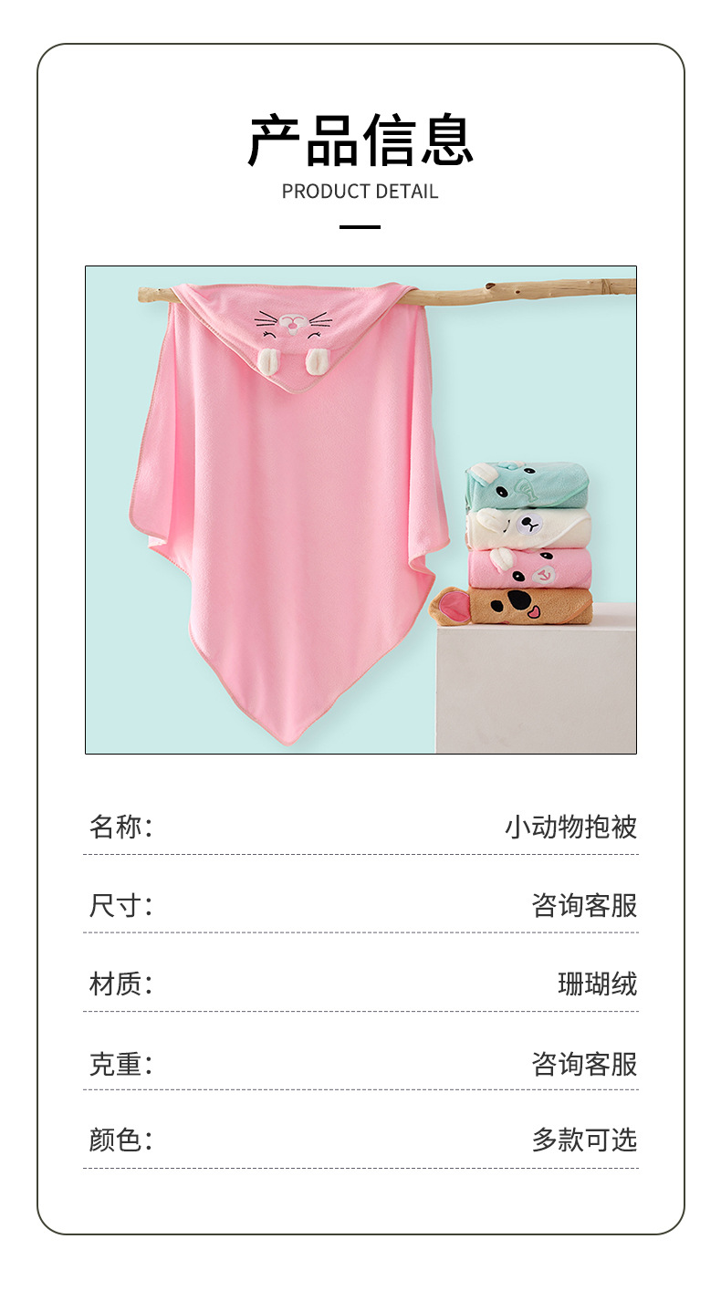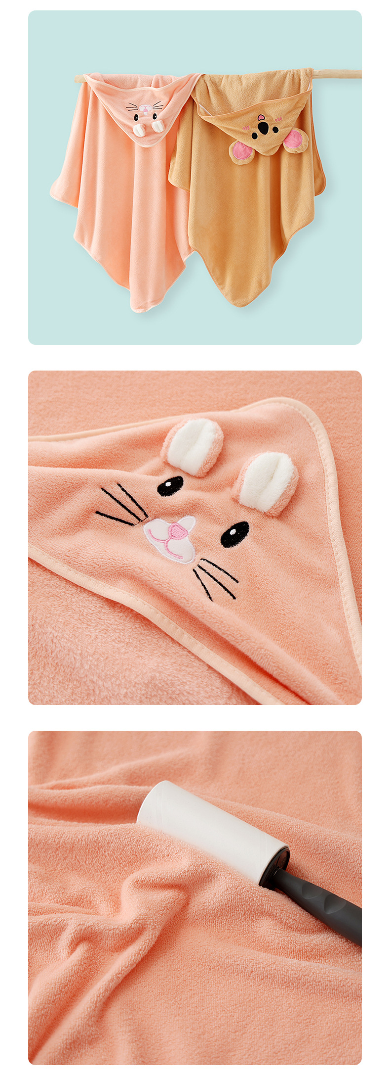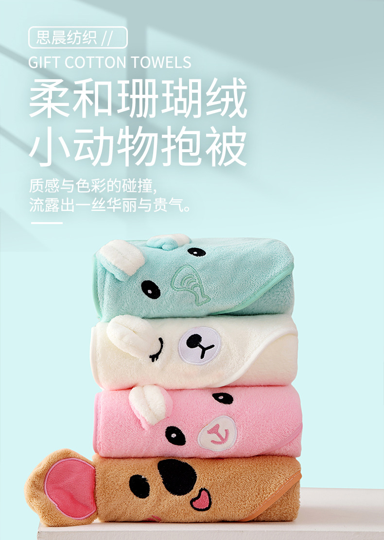 작은 동물 이불, 고밀도 이불, 산호 벨벳 자수 가장자리, 흡수성 유아 만화 아기 망토 목욕 타월