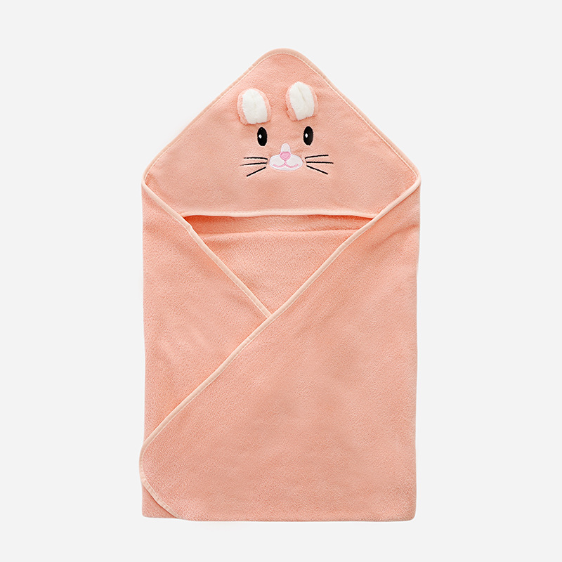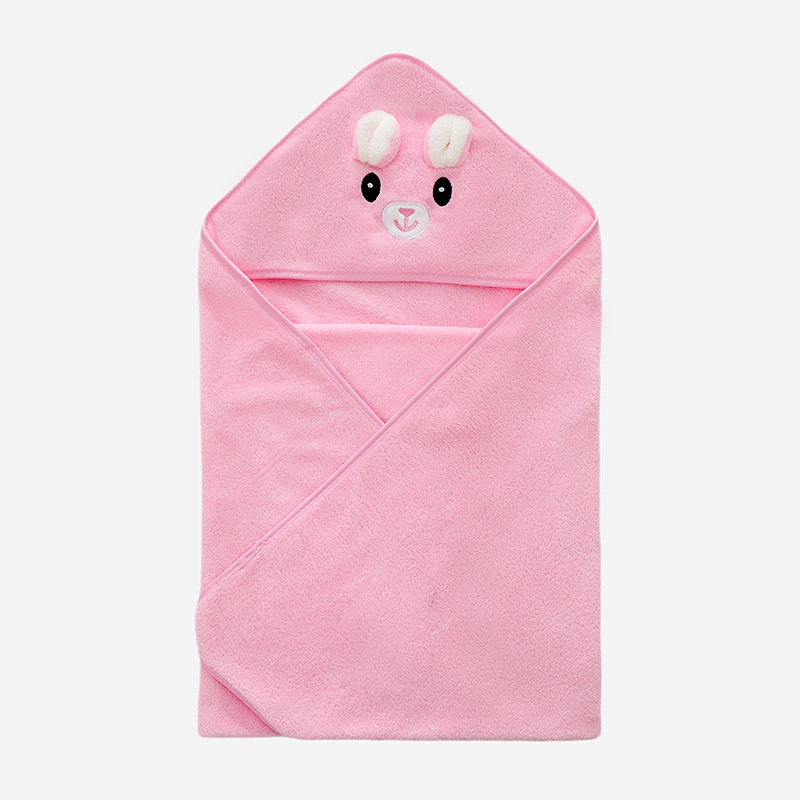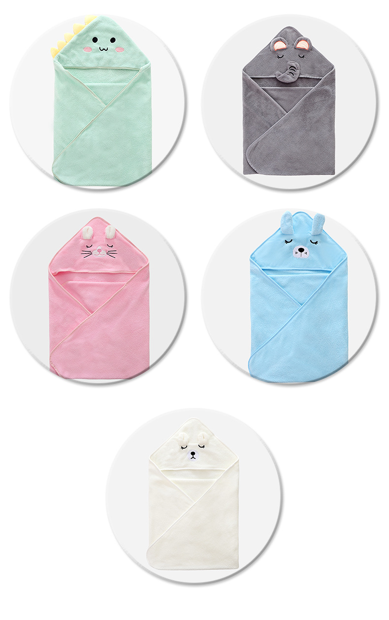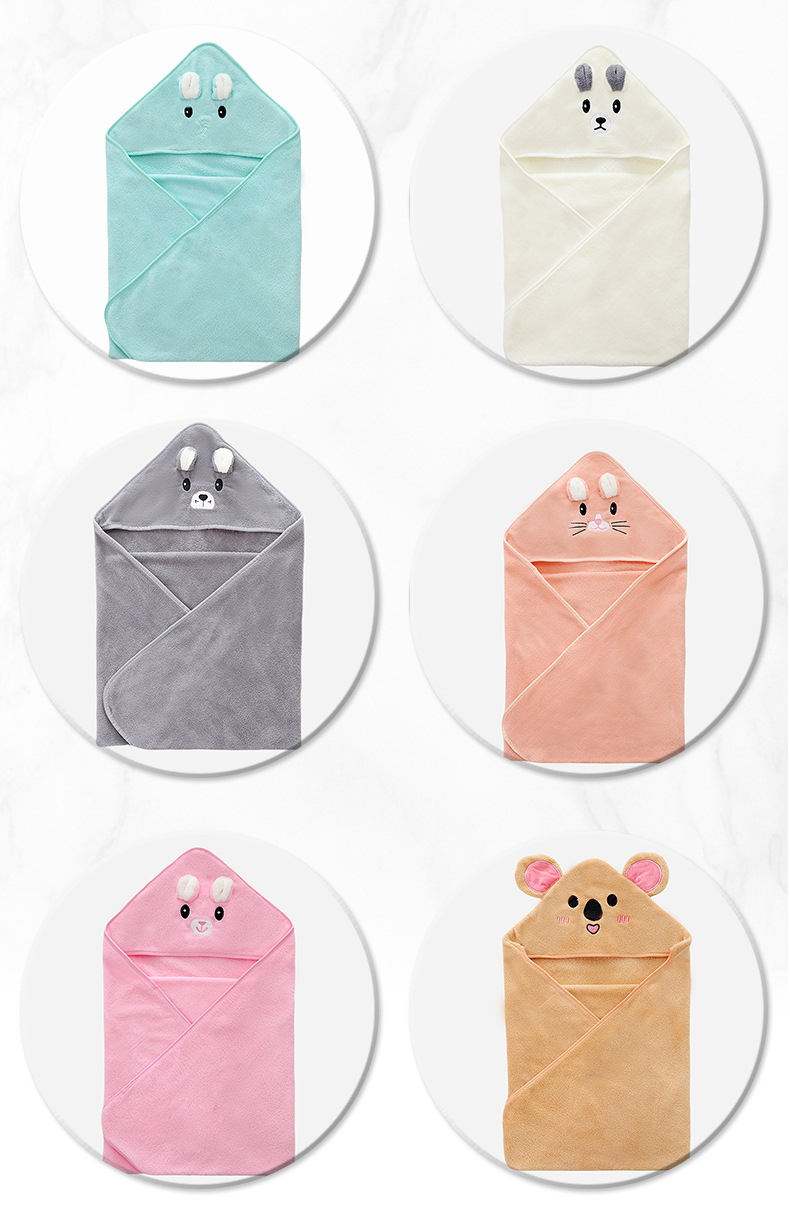 작은 동물 이불, 고밀도 이불, 산호 벨벳 자수 가장자리, 흡수성 유아 만화 아기 망토 목욕 타월