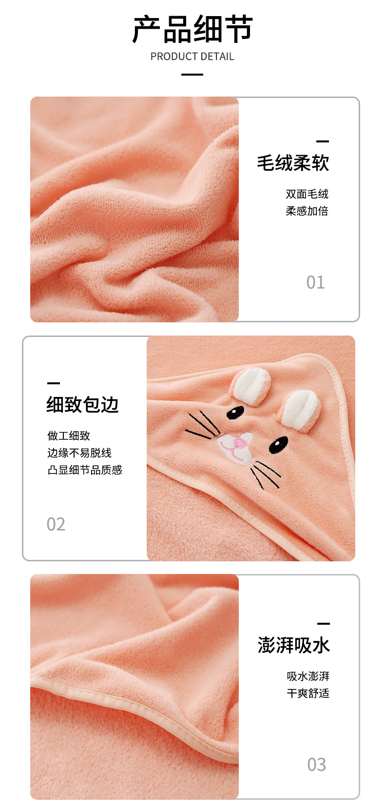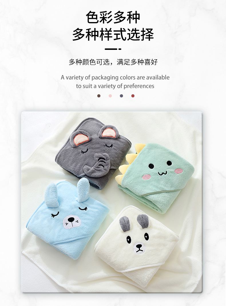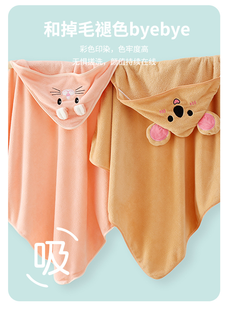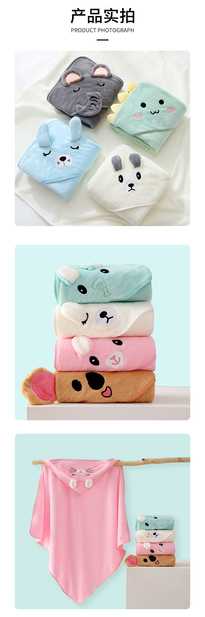 작은 동물 이불, 고밀도 이불, 산호 벨벳 자수 가장자리, 흡수성 유아 만화 아기 망토 목욕 타월스토어 가기