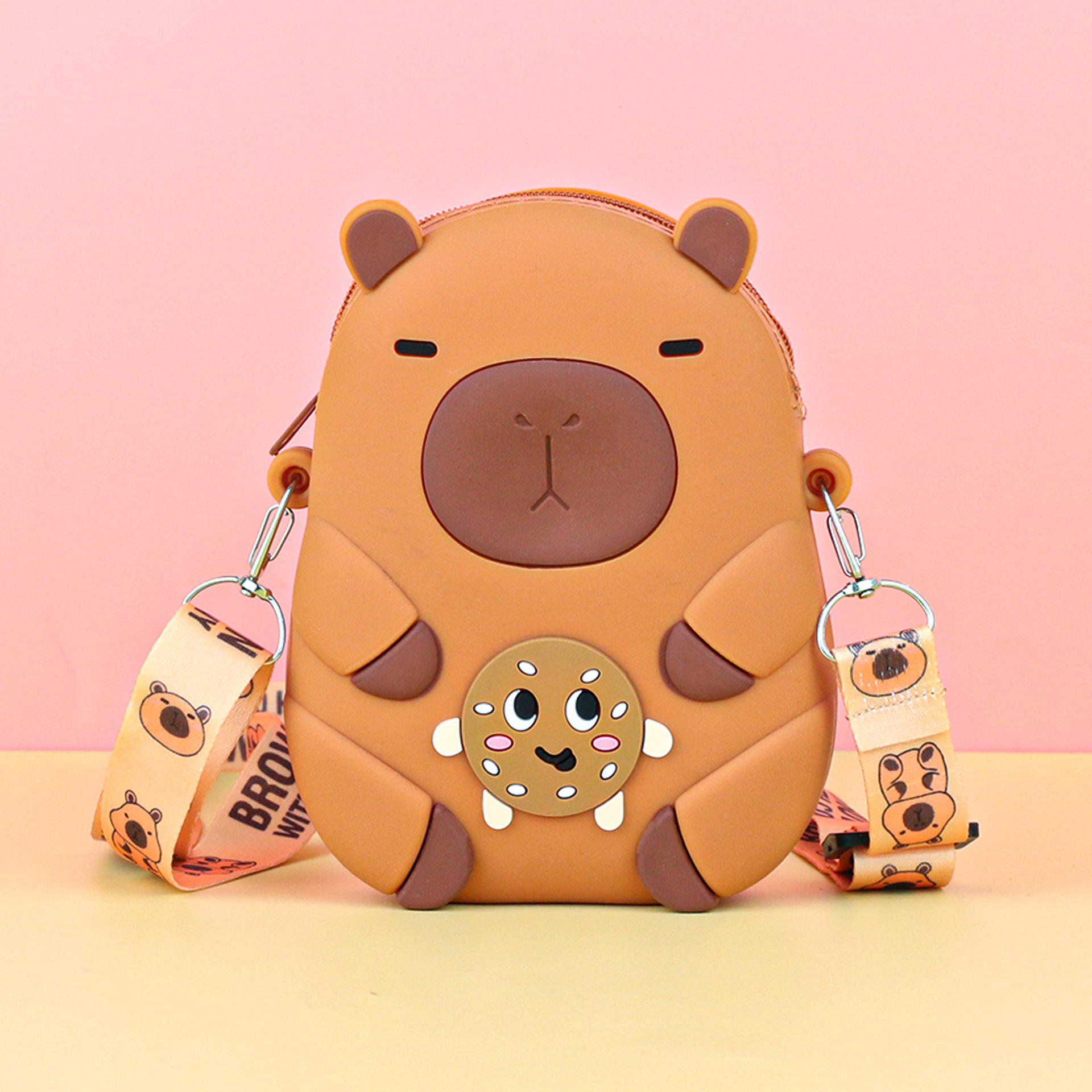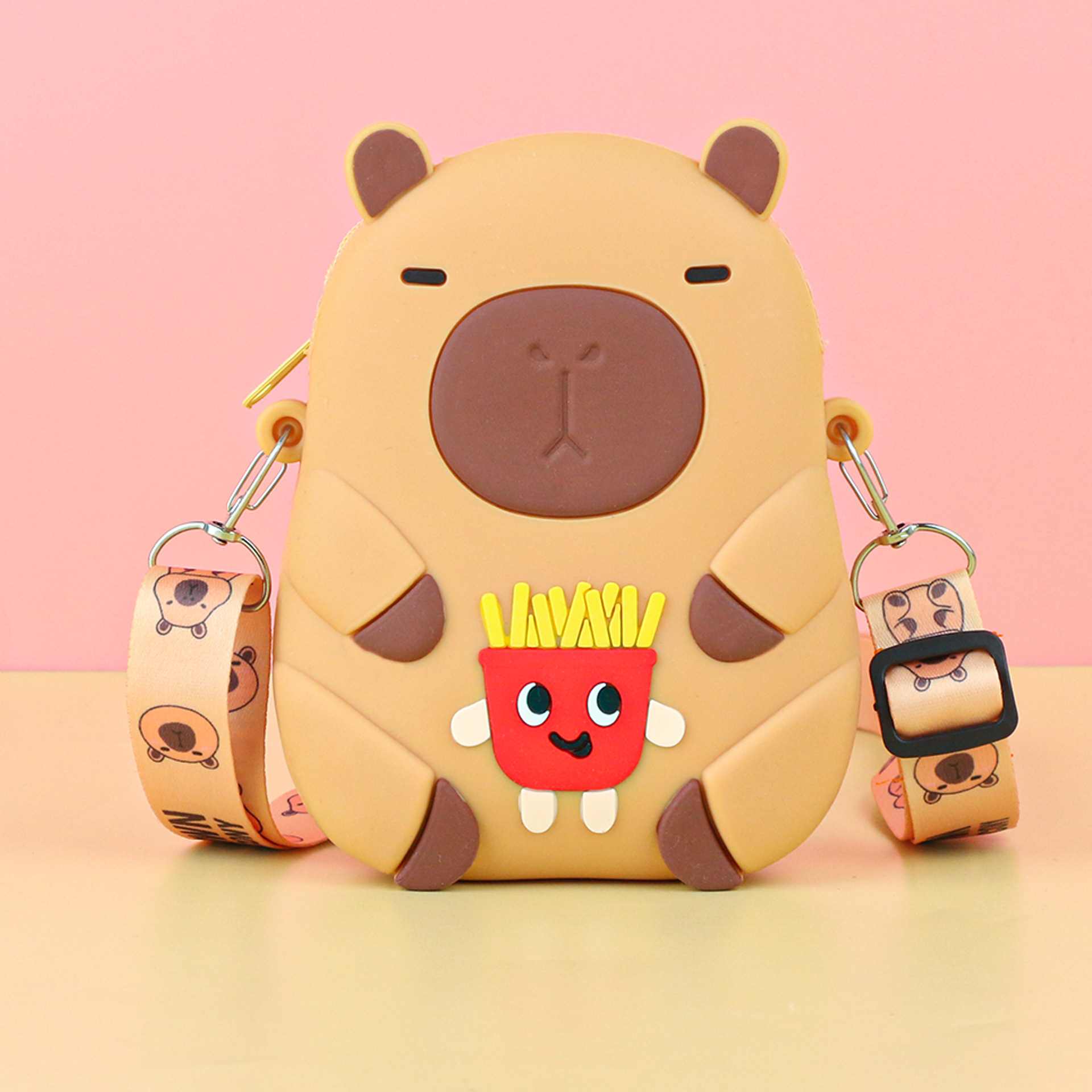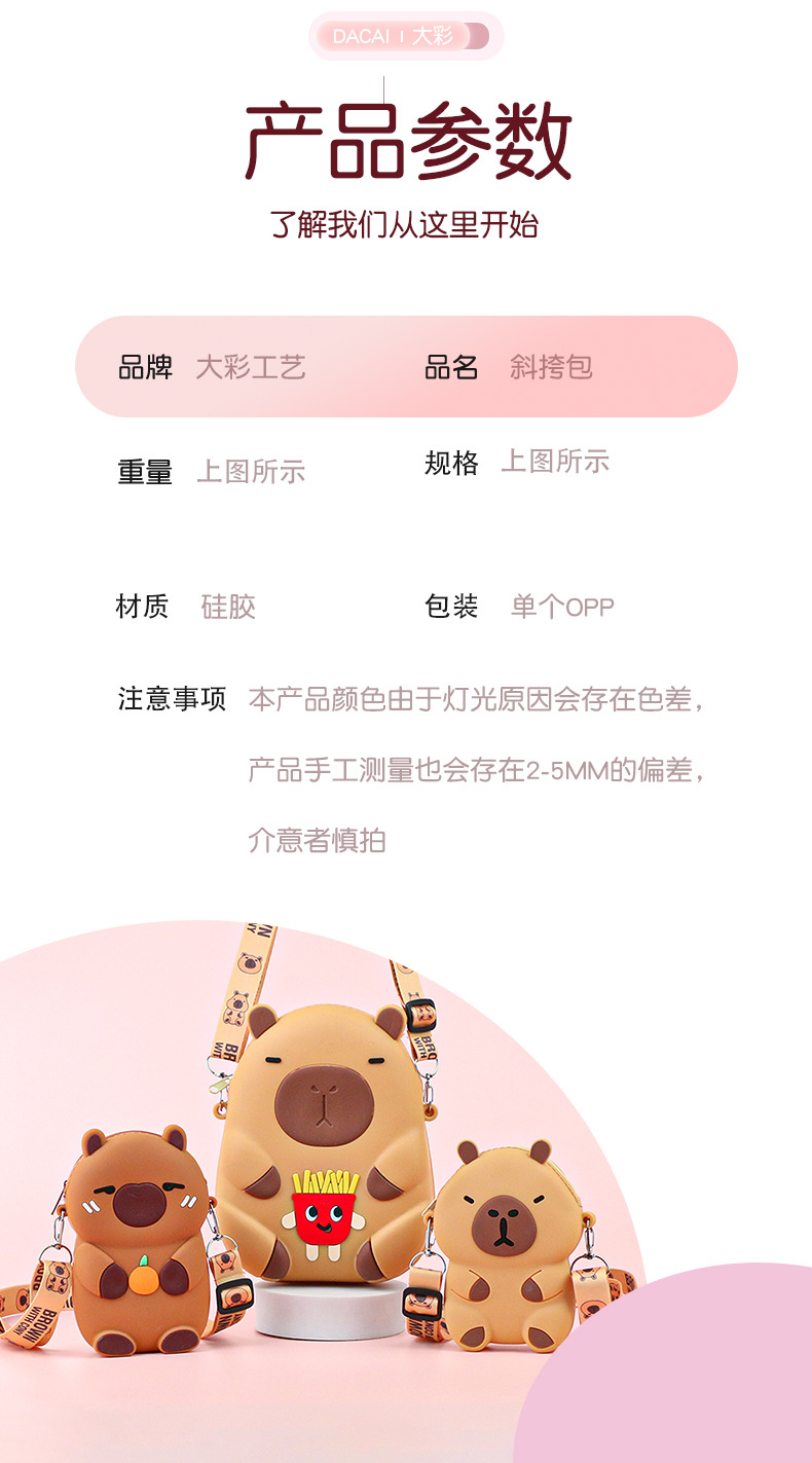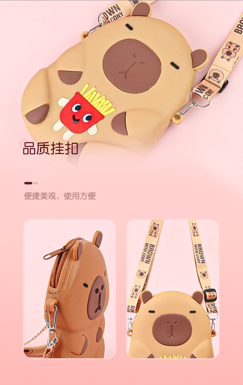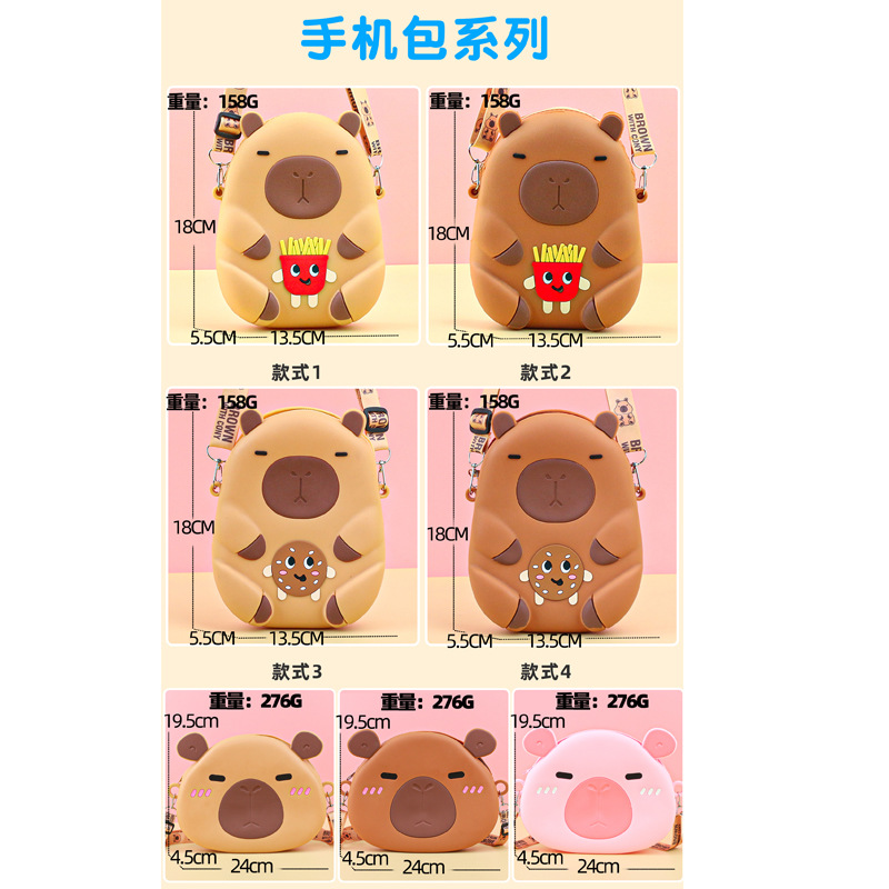 어린이 귀여운 Kapibara Crossbody 가방 여성 실리콘 가방 Crossbody 만화 미니 동전 지갑 어깨 휴대 전화 가방